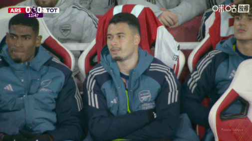 直播吧11月24日讯英超第12轮北伦敦德比,阿森纳主场迎战热刺,比赛第12分钟,特罗萨德被帕利尼亚踩倒地,替补席的马丁内利还笑了。