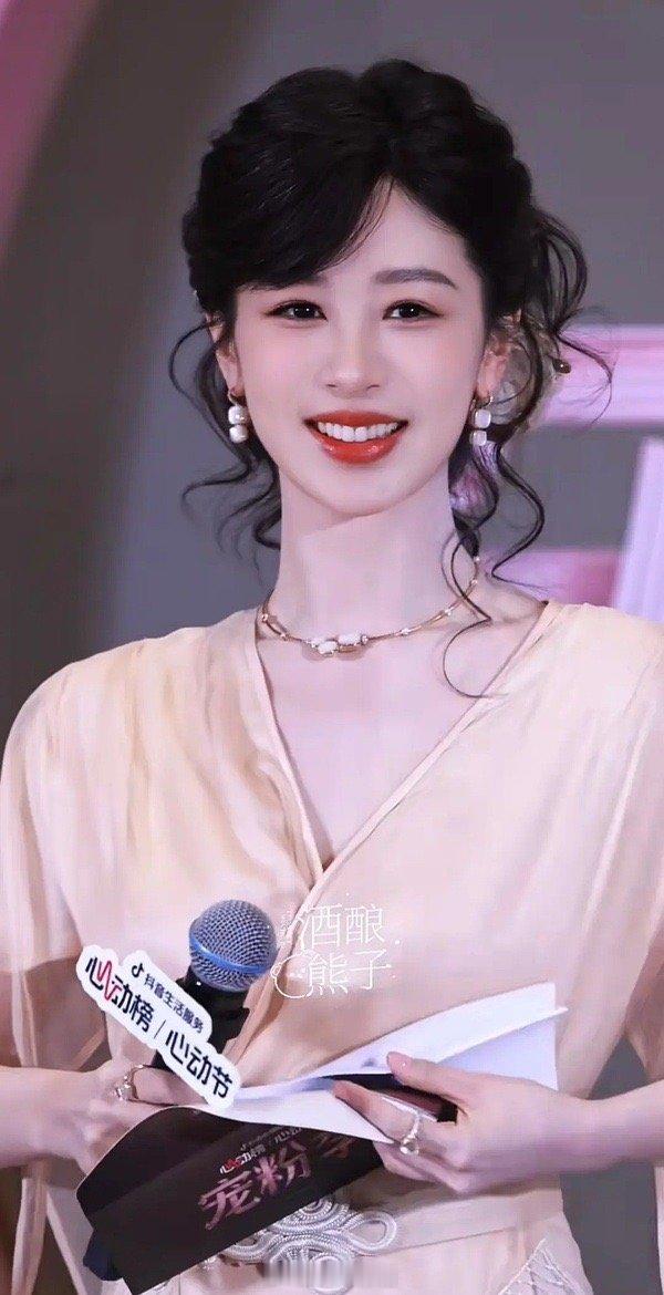 杨紫抖音生活服务心动榜代言人,北京见面会互动。粉丝提问:看到粉丝,因为你的话或