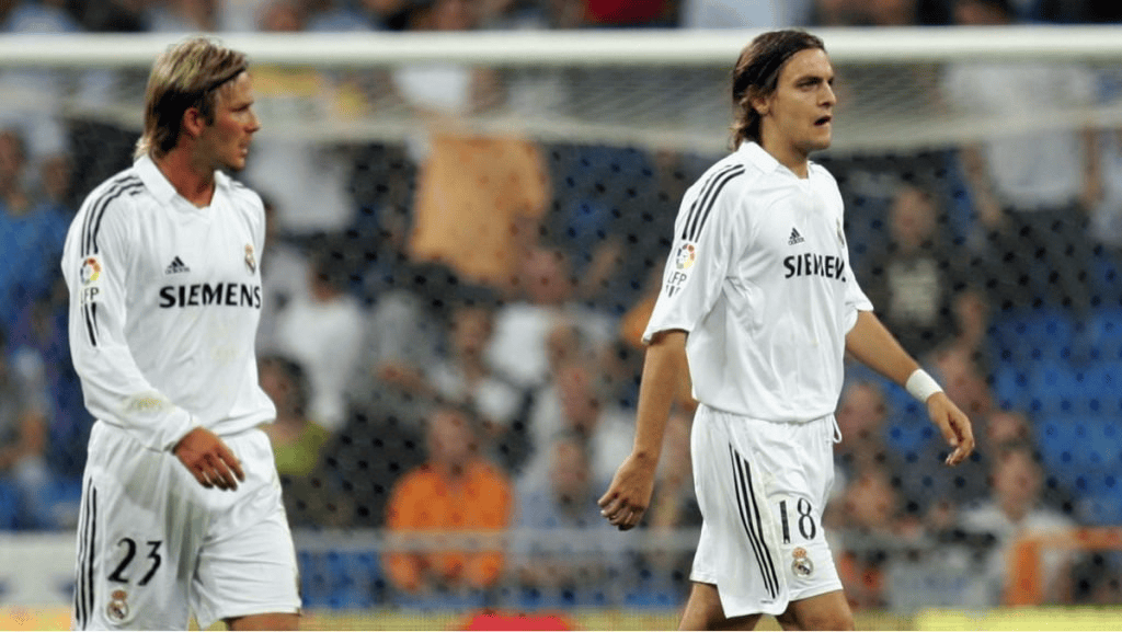 当时卡罗主教练在主场对阵西班牙人的比赛中安排伍德盖特与贝克汉姆同场首发。