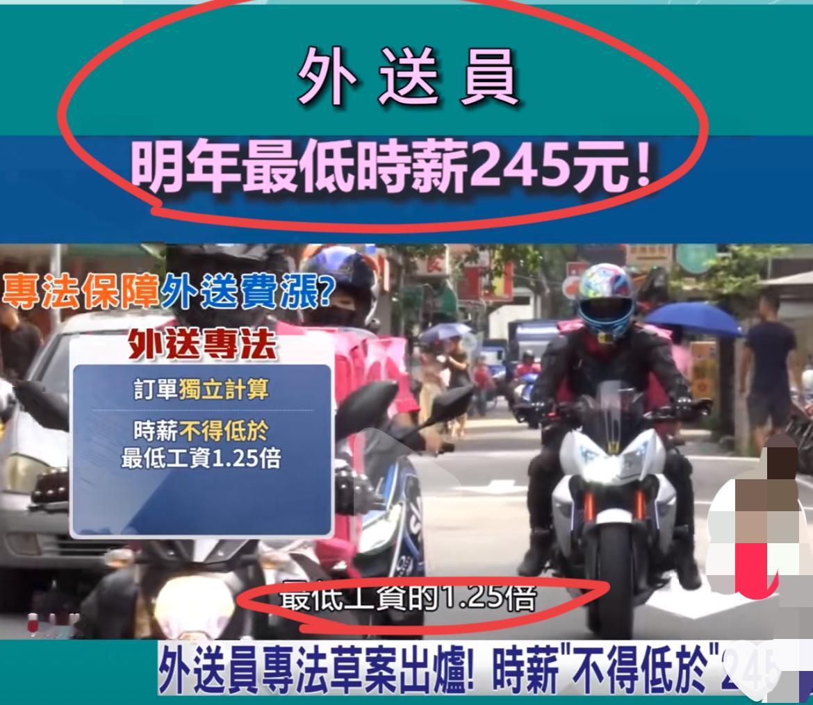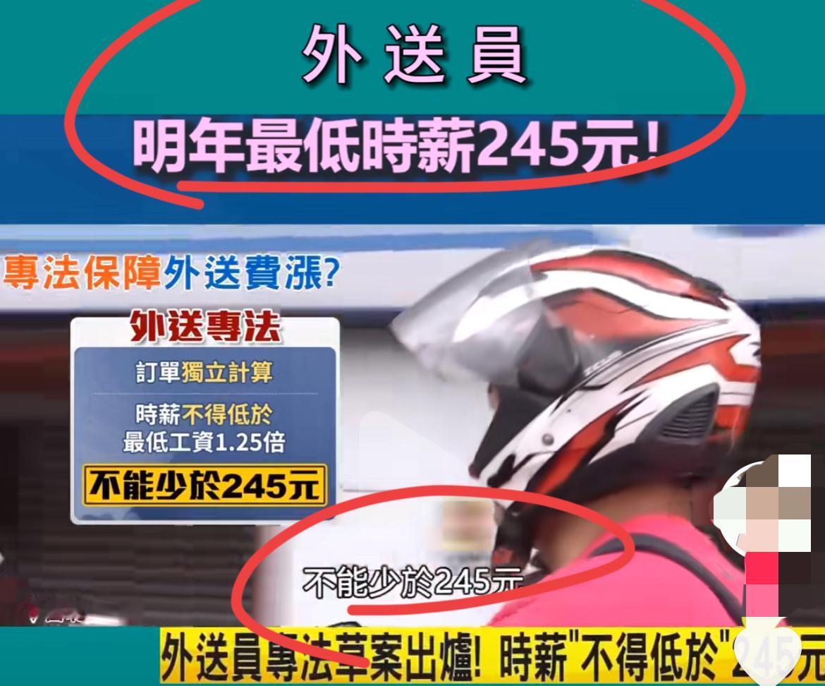 我国台湾省外卖员专法草案出台,明年起,时薪不低于245新台币!! 换算成人民币,时薪不能低于55元人民币~ 有网友说,这薪资还是不错的,建议我们大陆的各个平台也要向台湾省的平台看齐,不能输给了自己人啊!! 也有网友说,不要看表面的高薪,要看当地的物价水平和实际的购买力,再有就是我们大陆人多,人多力量大,台湾省有几口人,没人怎么做生意,还是我们好,养活了几千万灵活就业者,让底层也有工作,有活路,不好么,你们还想干啥呢?是的,经济也不太好,我们需要共克时艰,共同努力,最终实现共同富裕的伟大目标,加油!!