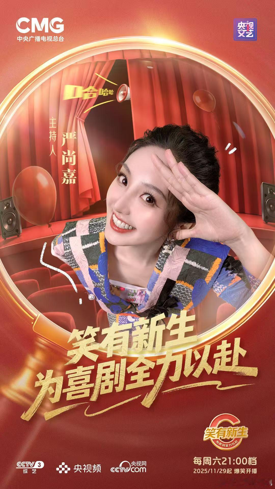 央视全新喜剧选拔综艺《笑有新生》定档11月29日!阎鹤祥、闫佩伦、严尚嘉组成主持团,张维威等学长学姐传经送宝,谢娜、贾冰携手叶童坐镇评委席,老熟人集结+新生力量碰撞,瓜子零食已备好,坐等开播笑到停不下来