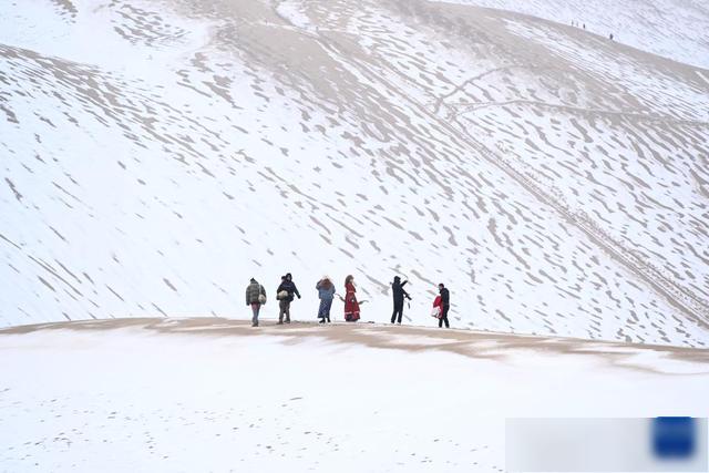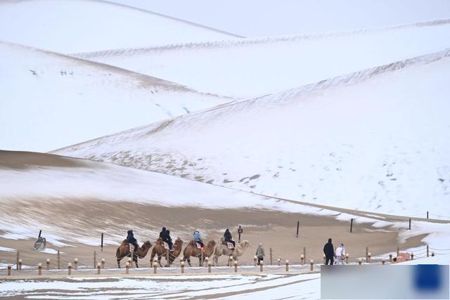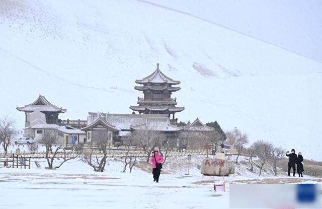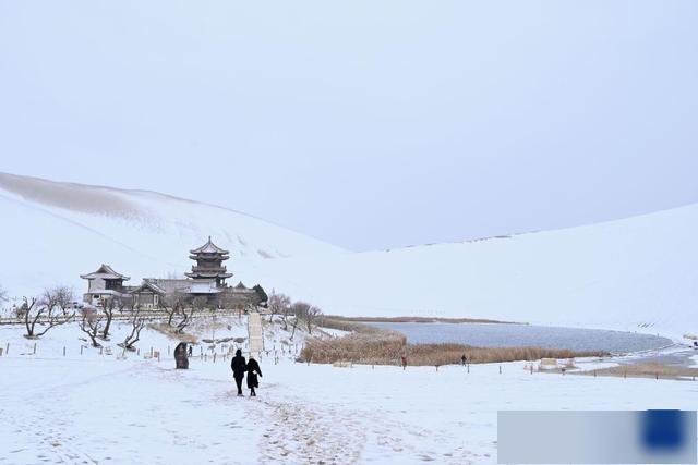 11月23日,受冷空气影响,甘肃省酒泉市敦煌市迎来降雪,当地著名景点鸣沙山月牙泉银装素裹,美不胜收。