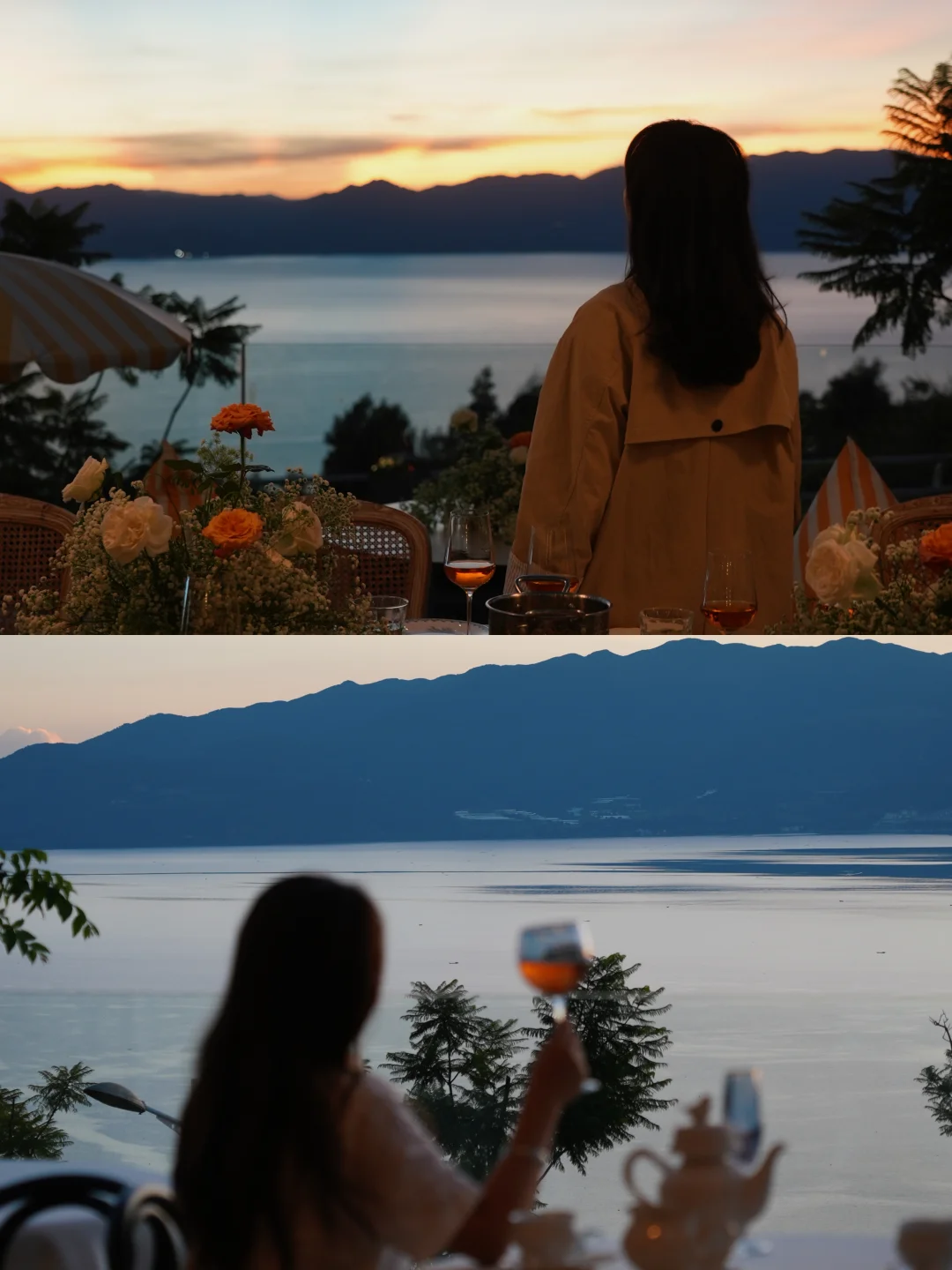 ✔️束西西餐厅:装修优雅有格调,湖景落日美呆···融合云南特色的西餐,食材新鲜,味道超棒!套餐分量足,完全可以吃到撑~里面的澳洲安格斯M5级西冷牛排🥩肉质鲜嫩,火候刚刚好,推荐!
