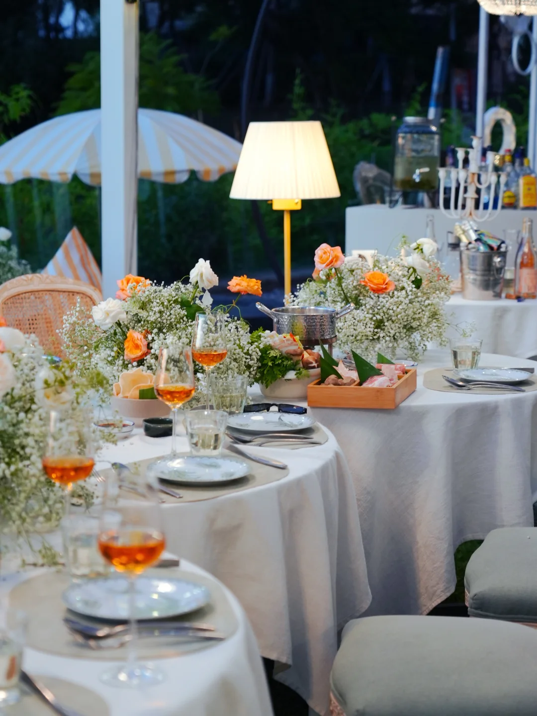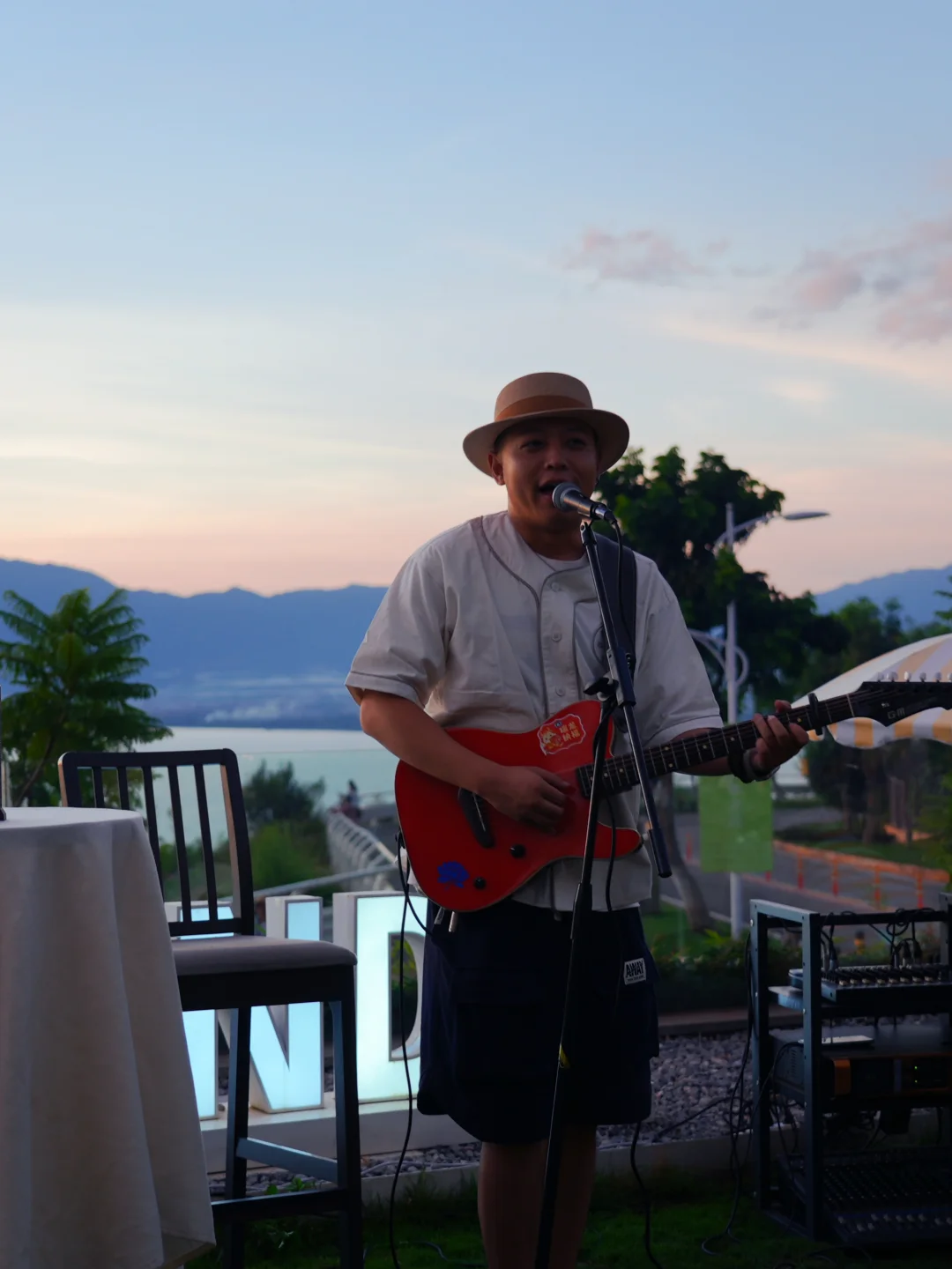 草坪、鲜花、篝火、弹吉他的歌手、白色葡萄架上挂满的柠檬🍋