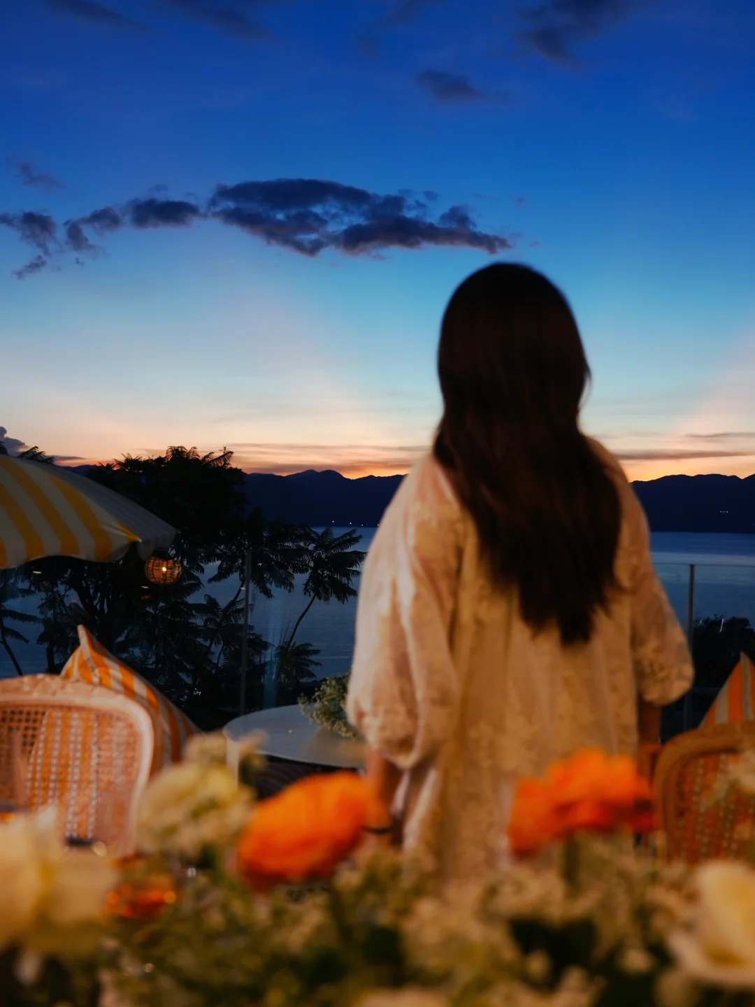 而且是看抚仙湖日落非常好的观景位,餐厅除了草坪上能拍照,还有一个六角亭,上面的视野更好!