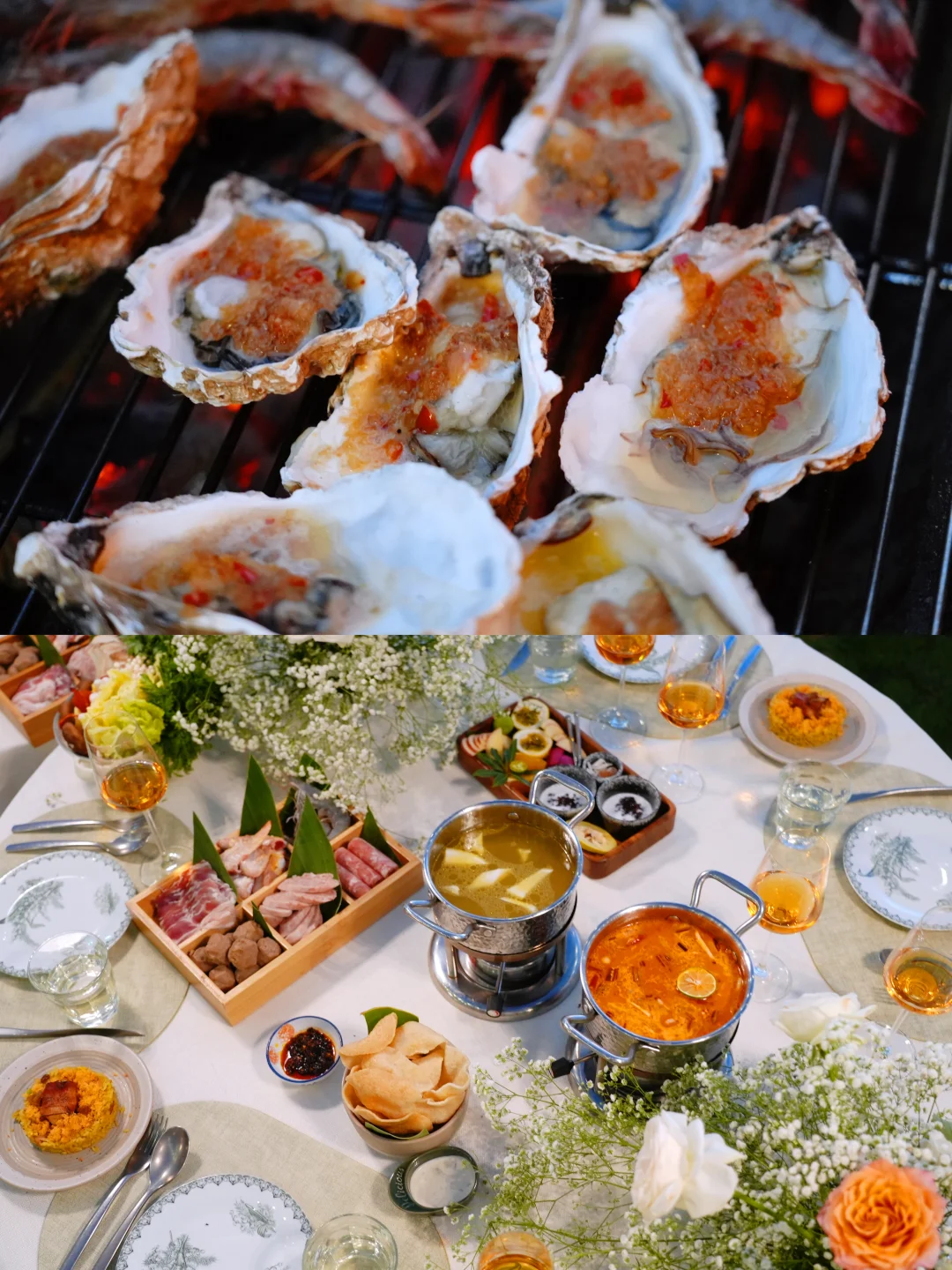 我们点了篝火南洋融合BBQ套餐和果物火锅,BBQ就是厨师在旁边现烤