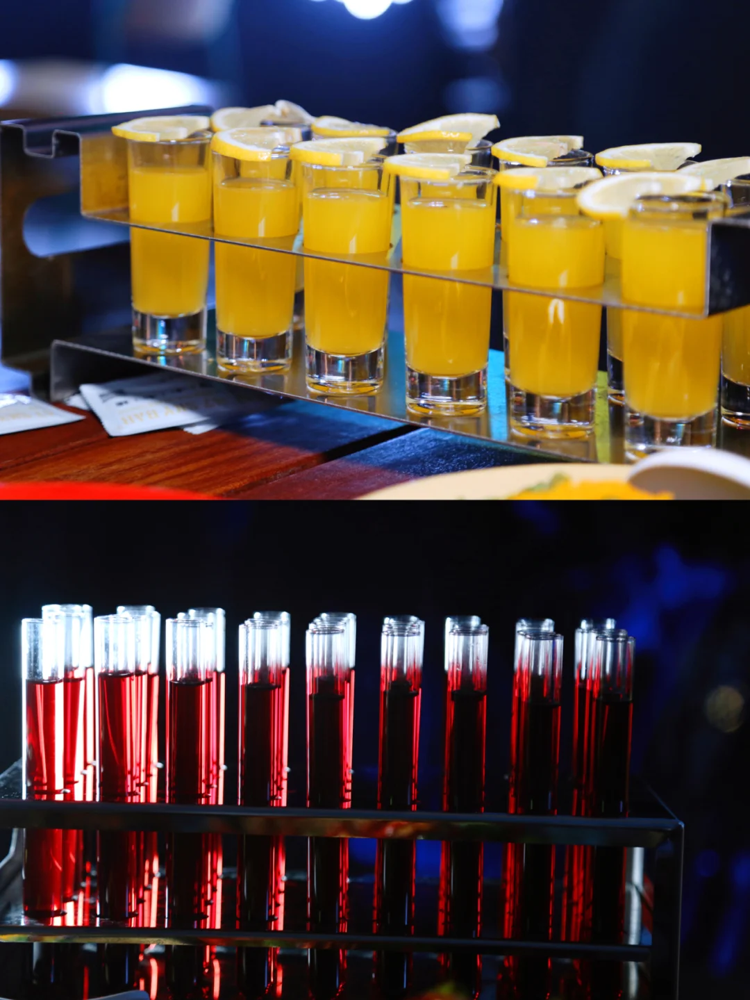 🉑️吃宵夜的时候,酒也可以安排上!饭桌子上点些试管酒、柠檬果酒……或者是去高空外悬sky bar🍸 微醺,红酒 香槟 威士忌 鸡尾酒基本都有🥃,晚上还有驻唱歌手,很适合和朋友👬小聚,生日party 这些!