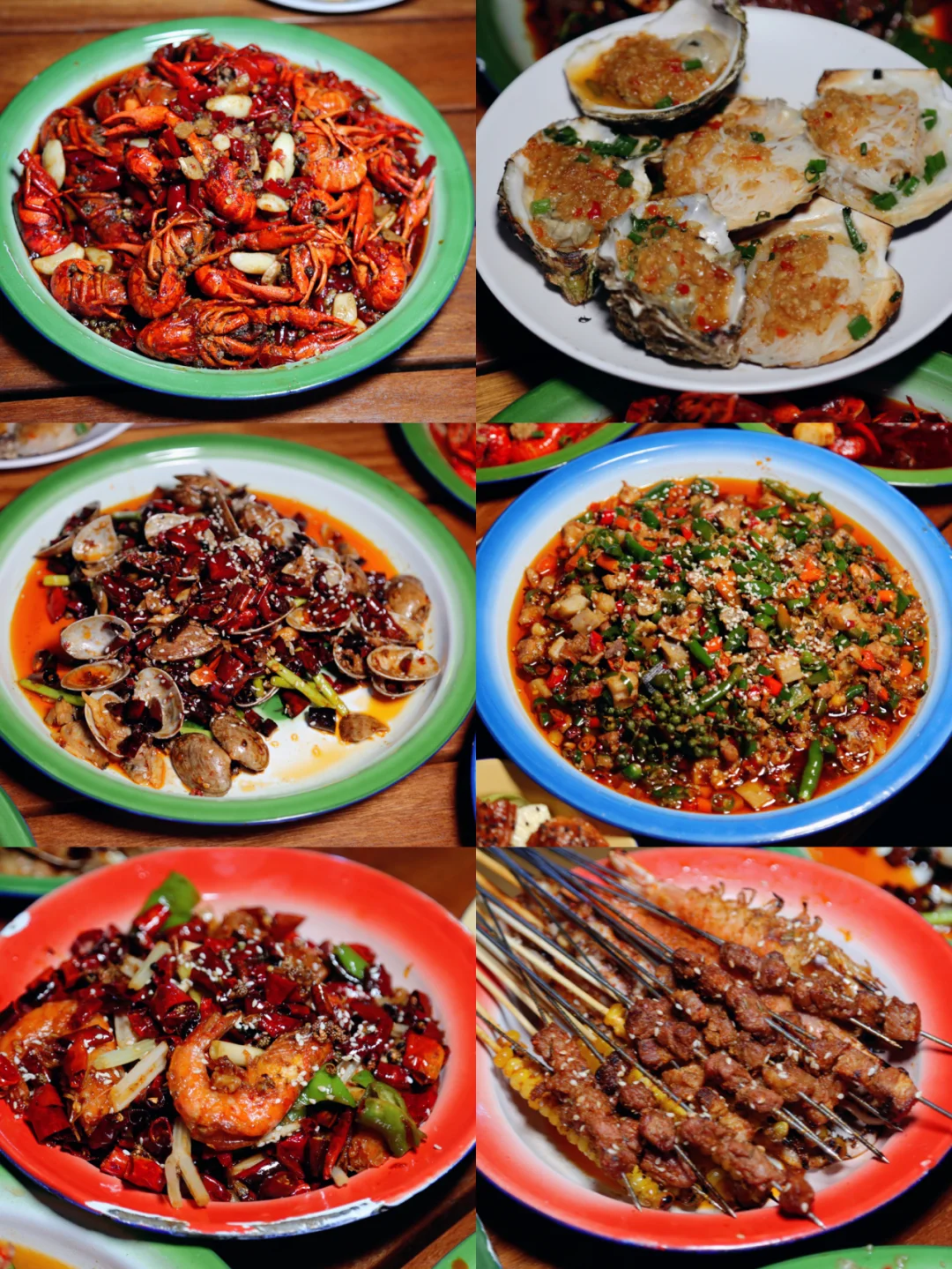 小龙虾🦞、烧烤🍢、江湖菜🥗、还有高空清吧bar,美景美酒美食统统都有……