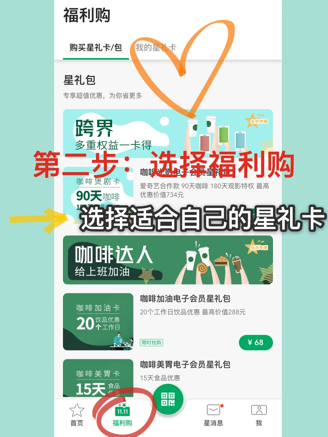 🌟推荐理由: 适合上班族、打工人,天天喝咖啡也不肉疼的星礼卡
