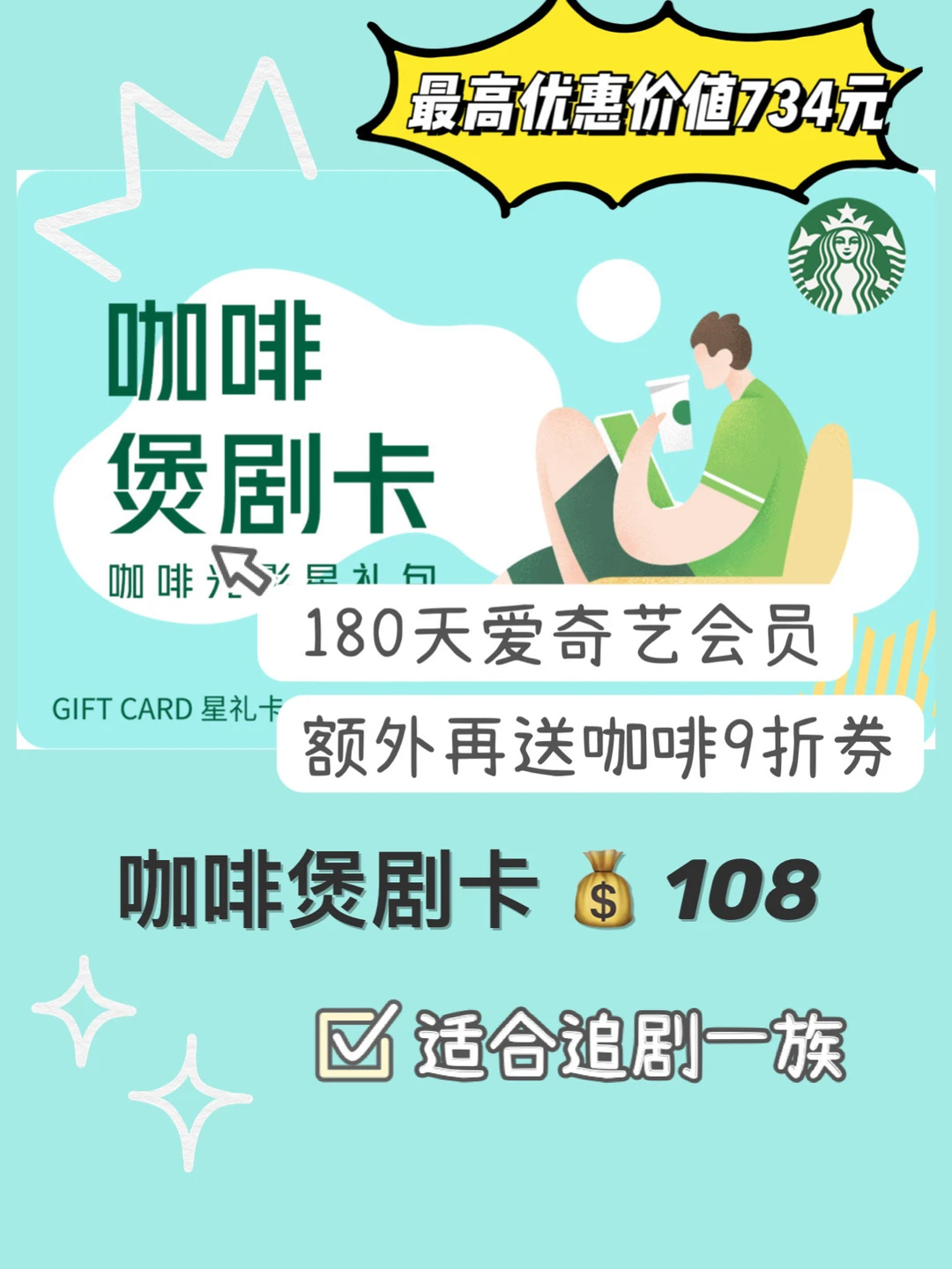 🔎这款是星爸爸和爱奇艺合作的星礼包,既能喝咖啡,又能宅家追剧!90天每天咖啡9⃣️折优惠 ➕180天爱奇艺观影特权(黄金 VIP 和定制 VIP )