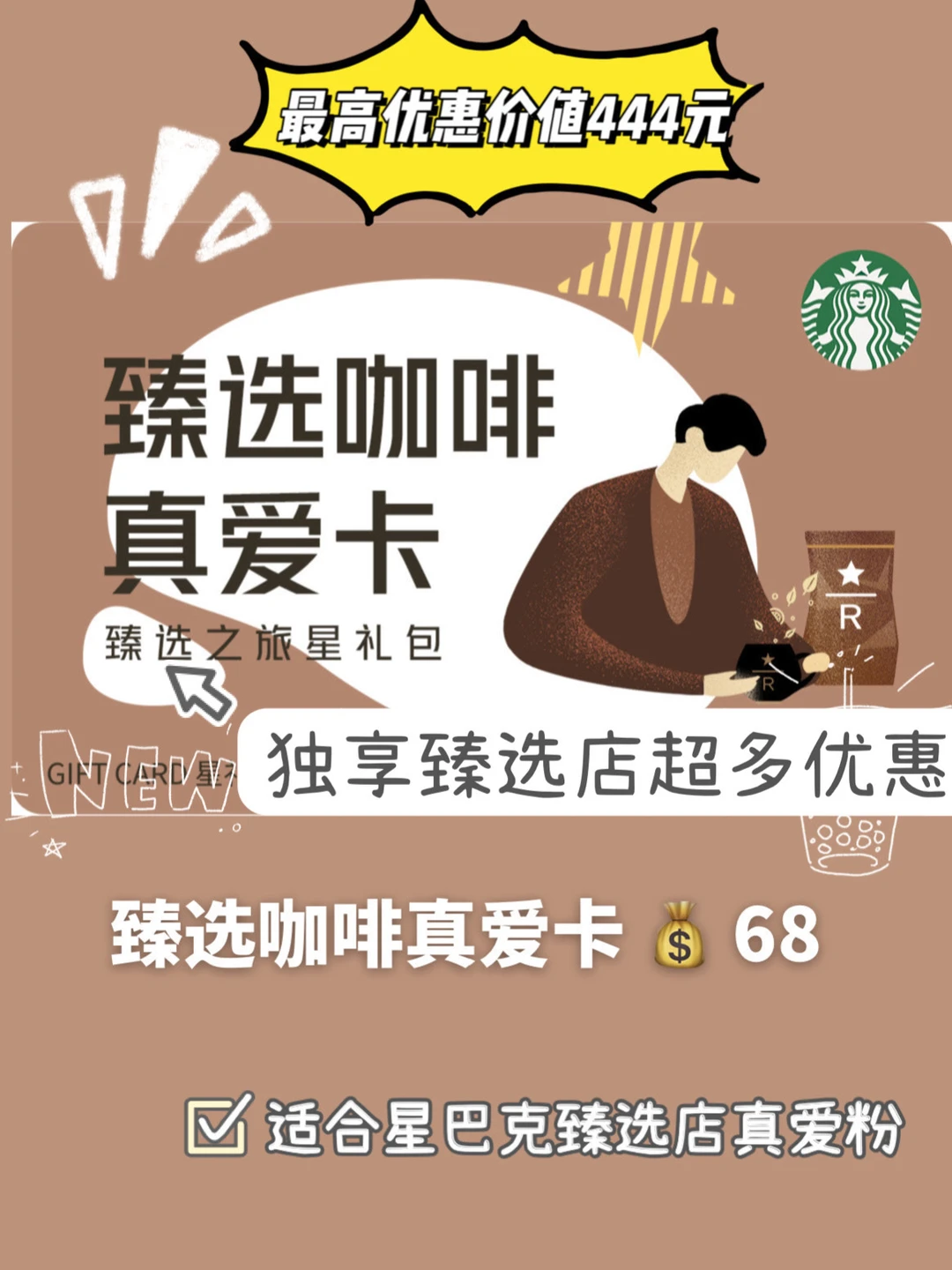 🔎臻选真爱卡在所有的星巴克臻选店都🉑️以使用!!!享受指定商品7⃣️折的福利,还有30张10元臻选饮品立减券➕一杯免费臻选饮品,很超值哦‼️