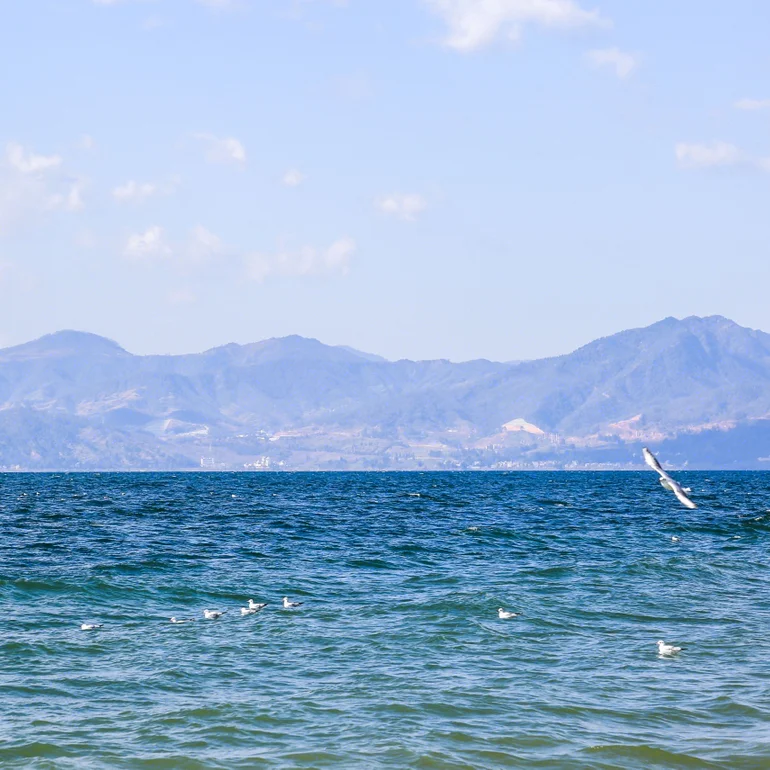 NO1、抚仙湖,距昆明50公里,大约一个小时车程,是中国最大蓄水量湖泊,最大的高原深水湖,同时也是第二深的淡水湖泊,环湖一圈约100公里,是云南最大的饮用水水源地,水质很好(据说可以直接饮用),所以不能游泳,平均深度95米,比渤海和黄海还深