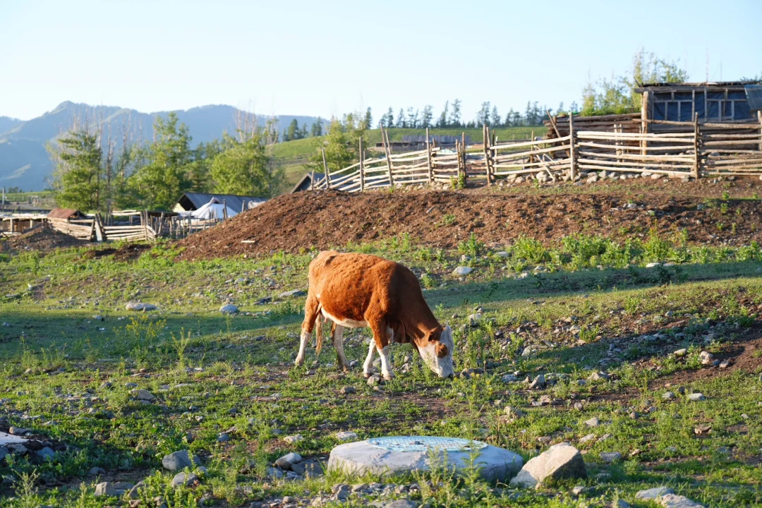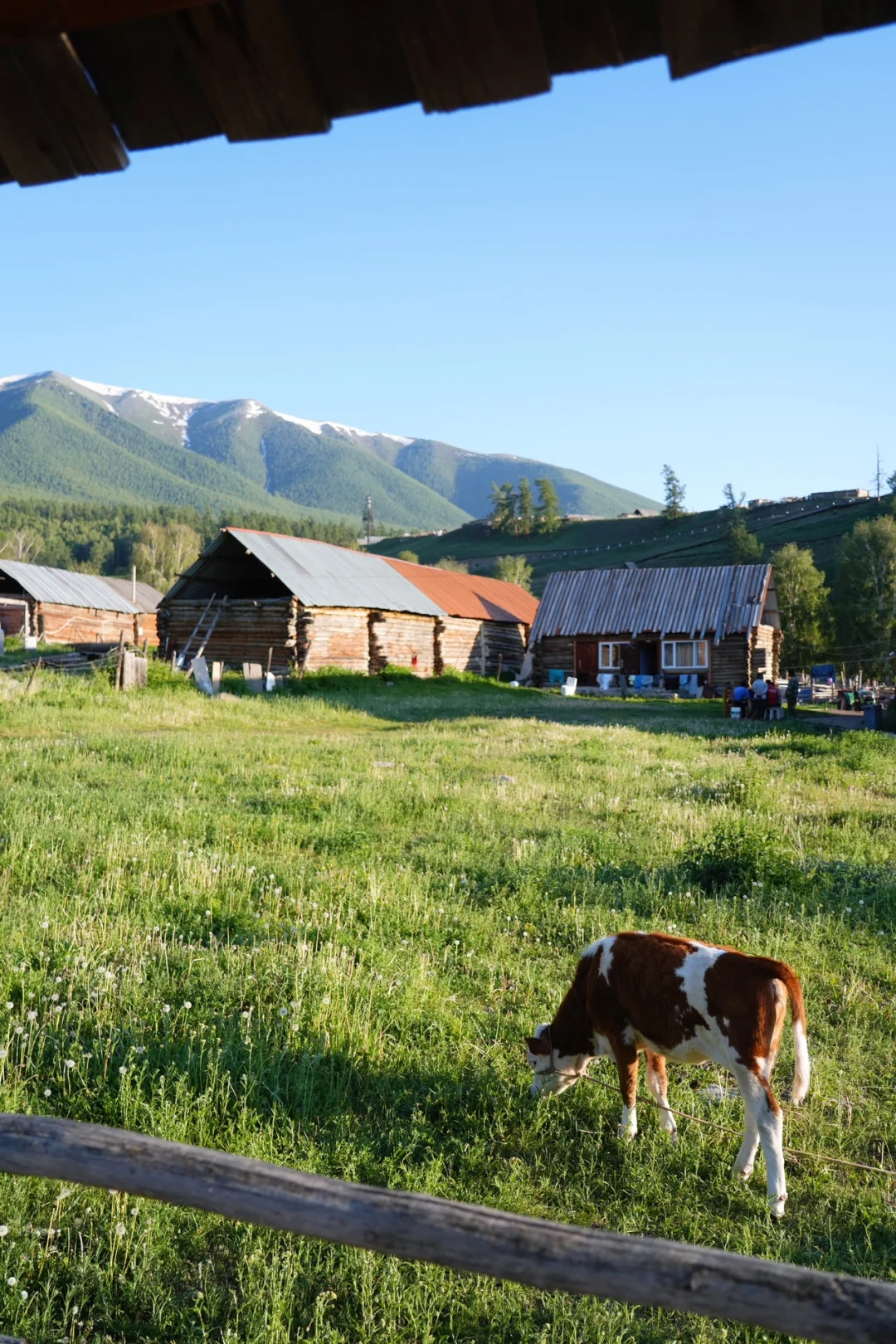 从禾木驱车前往,大概1个半小时。沿途风景很美,森林、河流、草地、牛羊,随手一拍,就是很治愈的夏天。