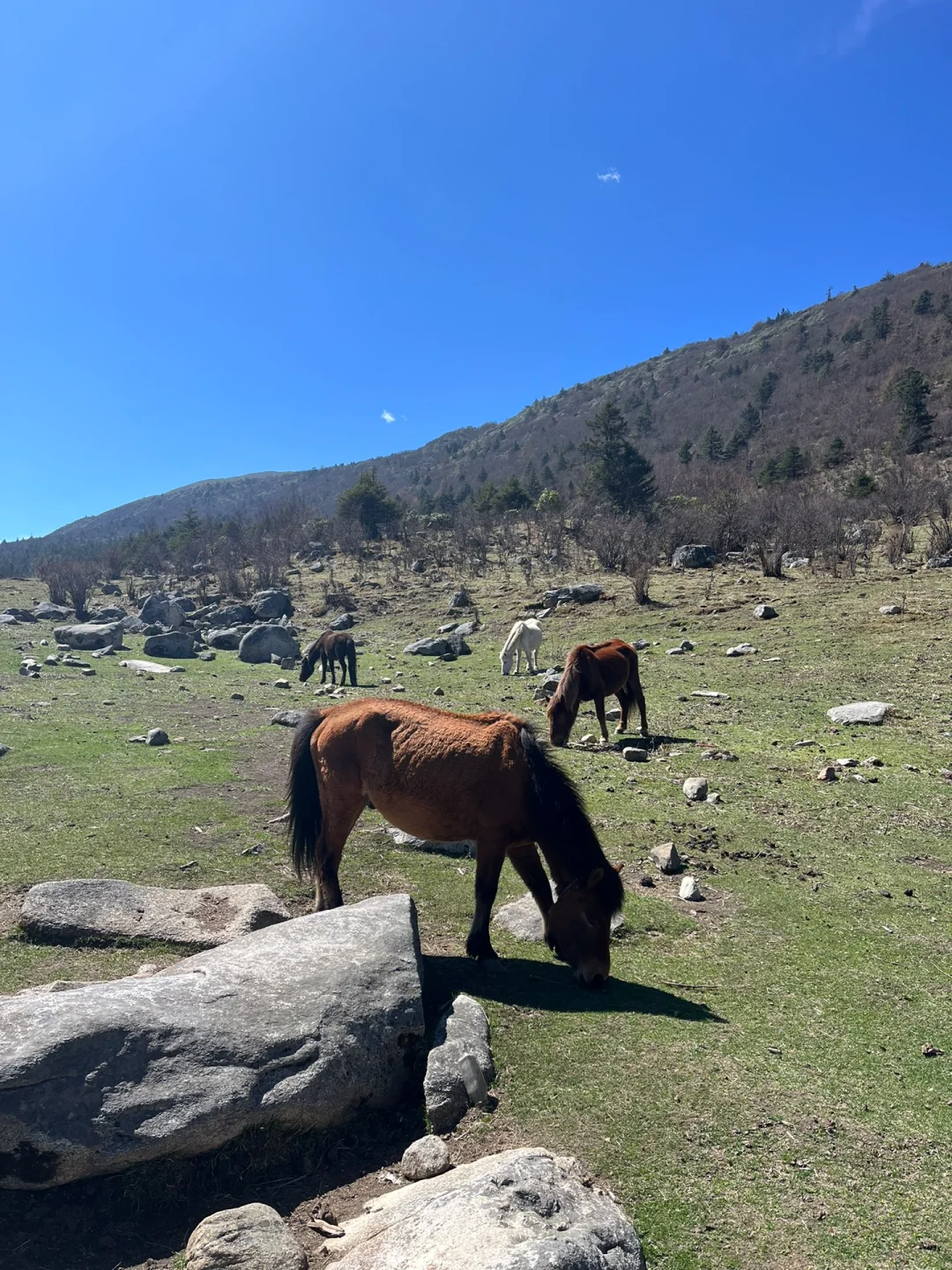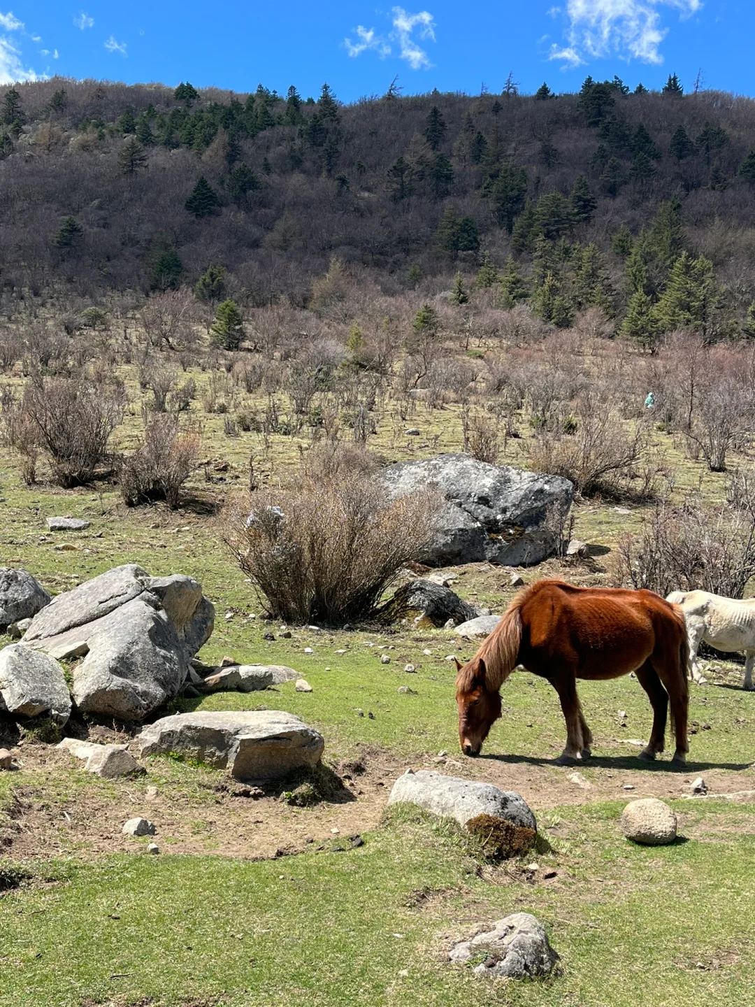 最近恰好有时间到康定玩几天,也不想在城区,就去周边转转~ 在雅加梗,找到了一条很美的徒步路线,真的是一个人都没有,还可以顺便体验挖虫草~ - 山上可以看到很多的马,没有牛羊,但是可以看到雪山,还是很适合徒步的 - 从康定沿着榆磨路开个半个小时就到了,在半山上,路况很好,有土路可以停车。 - 这次徒步没带相机📷全程手机拍的~