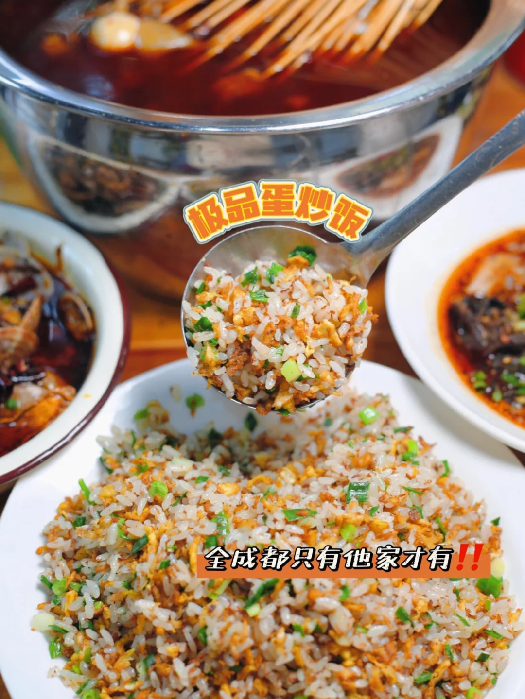 ✔️极品蛋炒饭:全成都只有他家才有‼️10多块钱一份,葱香味、蛋香味和米饭融合在一起,超级香!