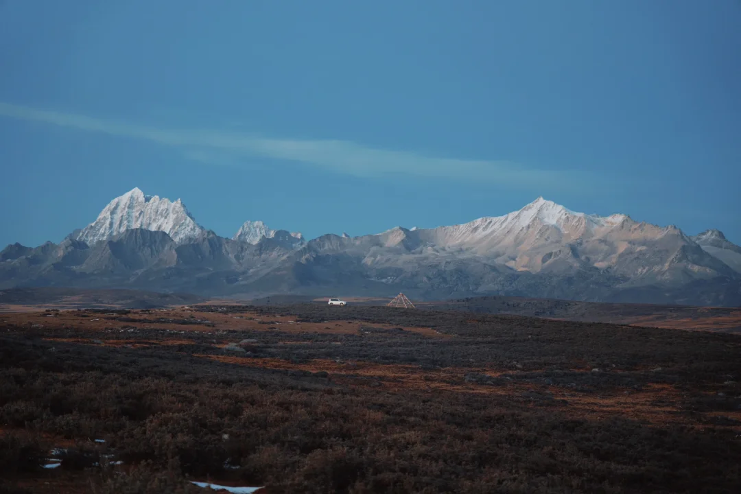 雪山下的光与影。 鱼子西,一个可以远眺贡嘎雪山和亚拉雪山的地方。 轿车也可以上去,不过是石子路,要稍微慢点,海拔4200米左右,上去短时间不会高反,前提是在新都桥不会高反(海拔3600左右)。 导航🧭鱼子西星空营地就行,距离新都桥约1小时。