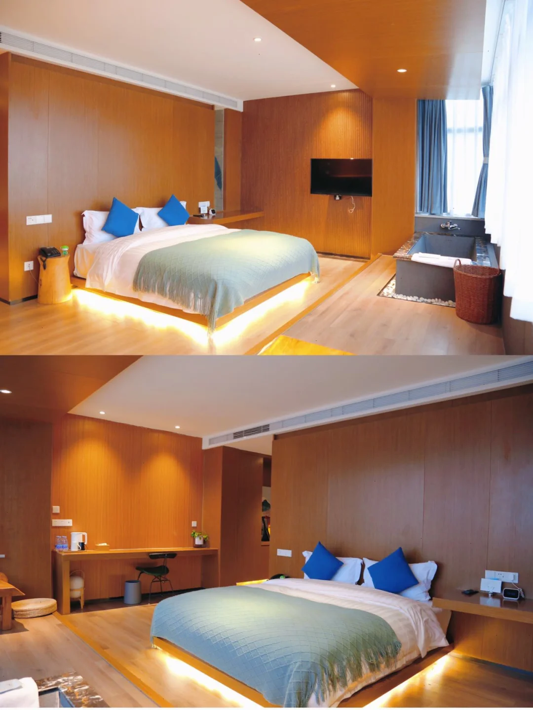 比起其他酒店🏨,桐去的房间更为宽敞,带娃入住也不会觉得拥挤。房间内是星级酒店标准的配置,金可儿床垫🛏,品牌卫浴🚽,配有地暖,洗护用品也是日本进口的,既精致又舒适✨!房间带有开放式浴缸,引入天然山泉水,这个季节泡汤太爽啦♨️还有超大的落地窗,躺着就能欣赏风景,简直神仙享受❗️