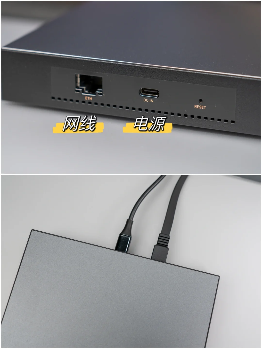 [彩虹R]体积小巧也是它吸引我的重要原因,重量只有422克,约2台手机的大小。既可以放在家里使用,也可以带出门使用。它的外观很简洁,背部只有网线和电源线接口,还支持充电宝供电。它采用无风扇设计,超静音运行,让你的使用过程更加安静舒适。