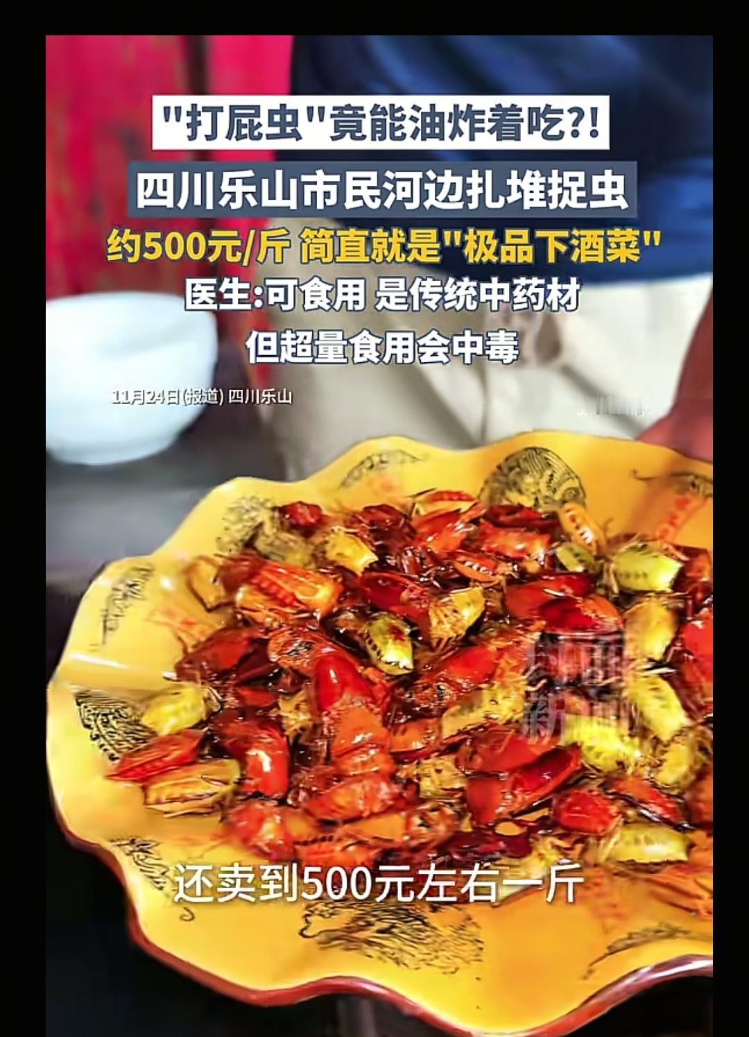 四川乐山打屁虫成了下酒菜!在中国,能吃的叫食材,不好吃的叫药材,不能吃的叫建材!