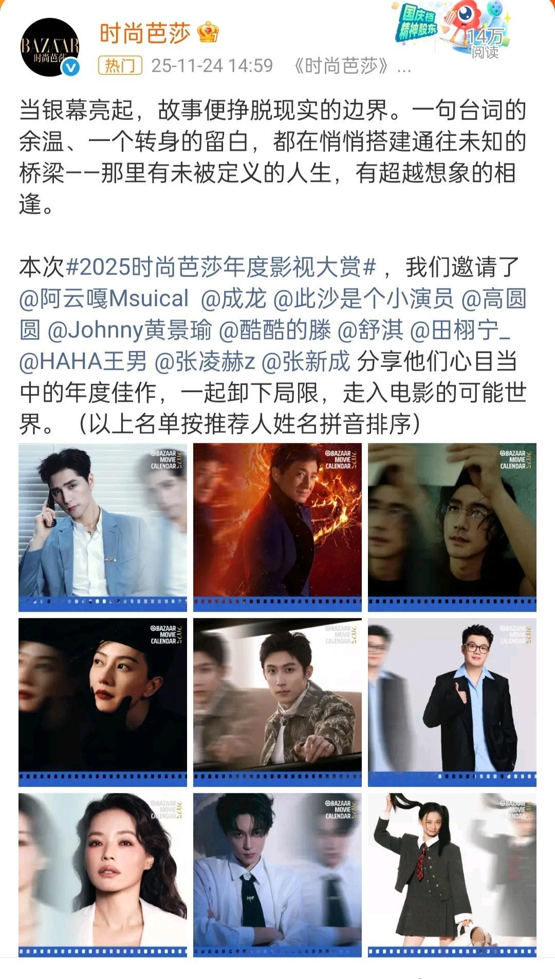 时尚芭莎2025年度影视大赏邀请田栩宁分享心目当中的年度佳作:《狮子王》