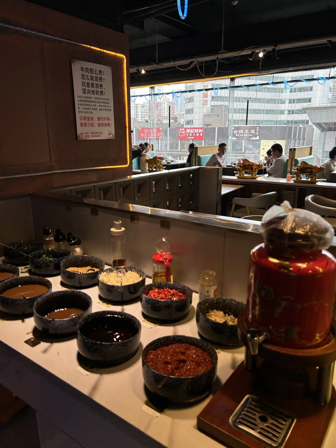 大声安利本地美食 宝子们👋 今天必须给你们分享一家我最近挖到的宝藏牛肉自助火锅店——牛鲜•潮汕牛肉自助火锅•生蚝•木炭烧烤店!就在珠江新城,地铁3号线岗顶站C口出来走几步就到,位置超好找~ 一进店,就能看到师傅在明档现切牛肉,这新鲜度,直接拉满!每一片牛肉的纹理都清晰可见,色泽红润,光看着就让人垂涎欲滴🤤 而且你可以直接去拿,想吃多少拿多少,实现牛肉自由不是梦! 他们家的牛肉种类超级丰富,吊龙、嫩肉、肥拼、匙柄……每一种都有独特的口感。吊龙肉质鲜嫩多汁,带着淡淡的奶香;嫩肉入口即化,超级嫩滑;肥拼则是肥瘦相间,香而不腻。我每次来,都要把这些品类all in! 除了牛肉,还有鲜活的虾可以捞哦🦐 看着这些活蹦乱跳的虾,就知道有多新鲜了。捞上来放进锅里,不一会儿就变成了红彤彤的美味,虾肉紧实Q弹,鲜甜无比。 这里还有各种烧烤,羊肉串、鸡翅、烤生蚝……味道也都很不错。烤串都是师傅现烤的,火候掌握得恰到好处,外焦里嫩,撒上特制的调料,香得我直跺脚! 对了,他们家的生蚝也一定要试试,个头超大,而且非常肥美。无论是清蒸还是蒜蓉烤,都能完美展现生蚝的鲜美。一口下去,满满的幸福感~ 店内环境宽敞明亮,座位也很舒适,不管是朋友聚会还是家庭聚餐都很合适。服务也很周到,店员会及时帮忙收拾桌面,加水也很勤快。 价格也非常亲民,人均不到100就能吃得超满足,性价比超高! 📍地址:天河区天河路598号百脑汇科技大厦C座六楼(华为售后隔壁,门口有个小黄牛) 🕙营业时间:10:00 - 22:00 💰人均:92元 宝子们,别再犹豫了,赶紧约上你的饭搭子一起来这里大快朵颐吧!相信我,吃一次你就会爱上💖