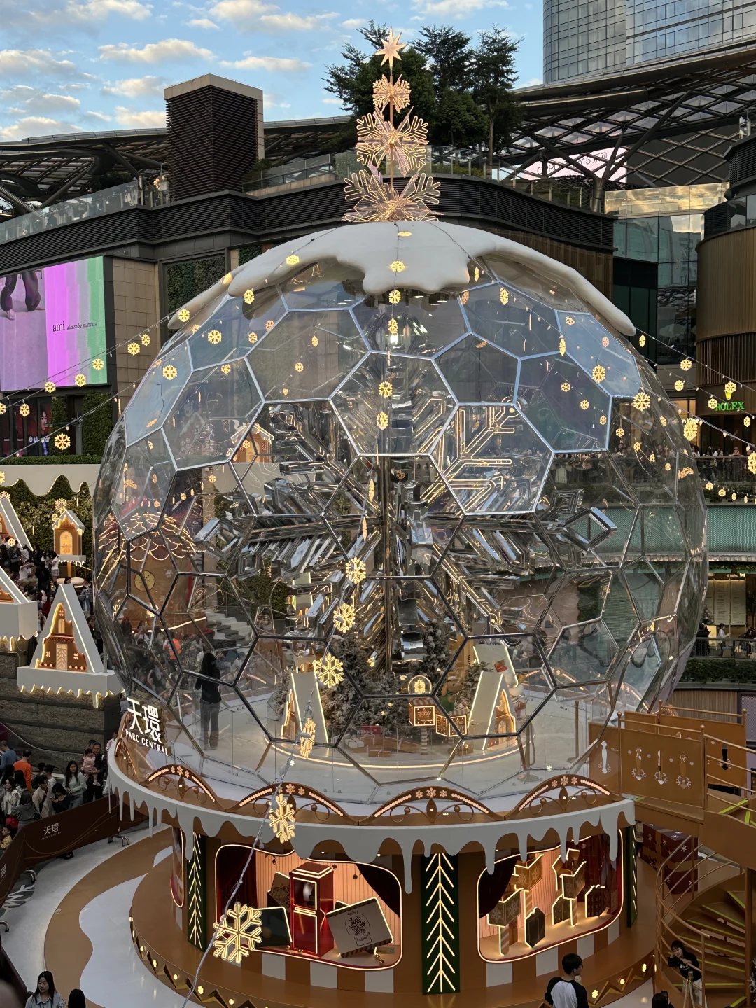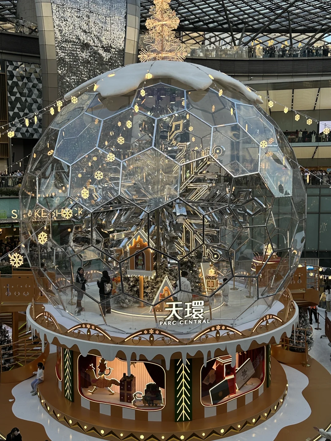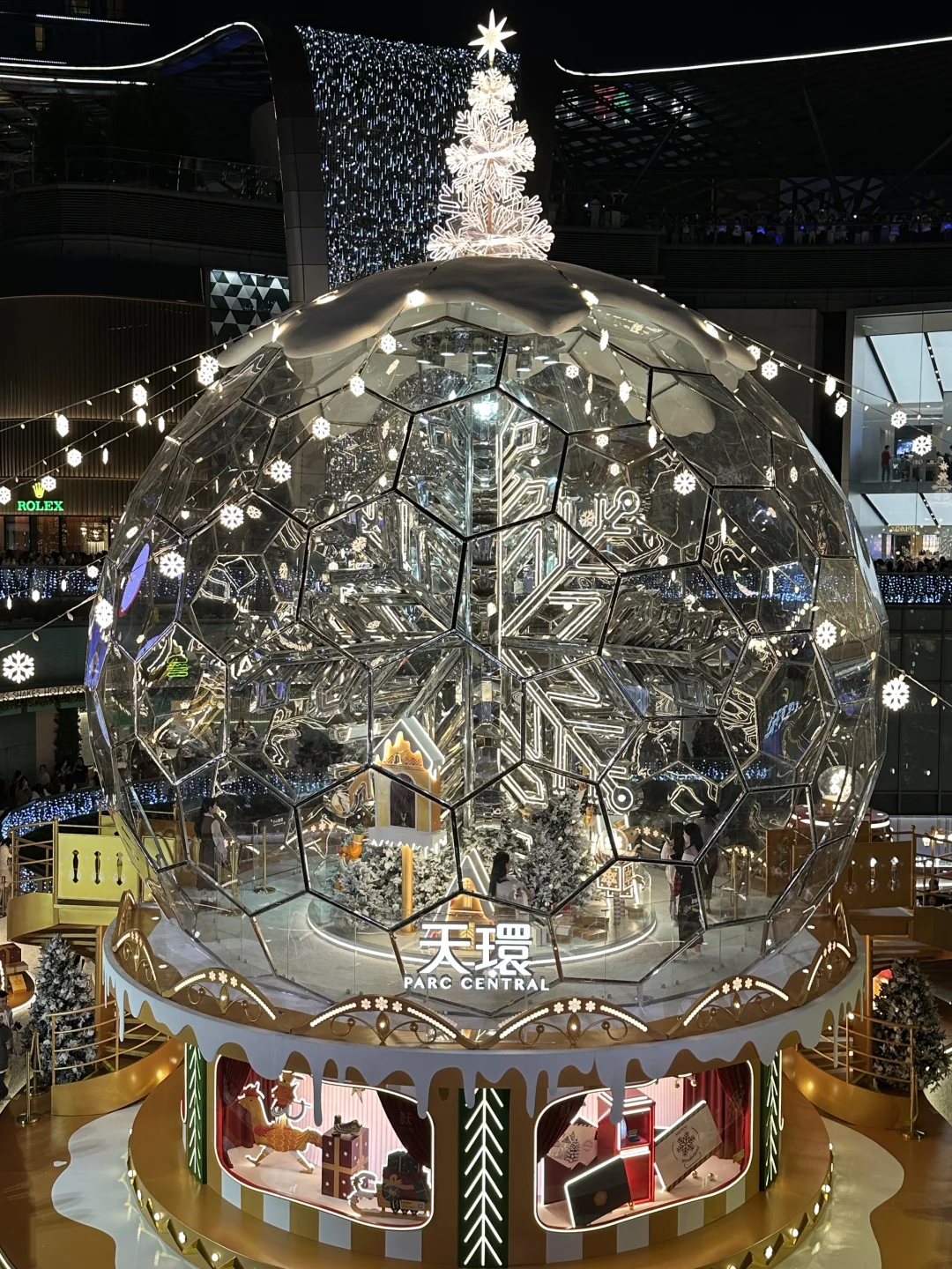 周末去哪儿 谁懂啊家人们!广州圣诞预热也太卷了吧😭 天环广场今年的圣诞限定雪花透明球,直接美到我失语! 下午4点专门赶在日落前冲过去,刚好赶上灯光初亮的时刻✨ 阳光透过透明球体折射出细碎光斑,雪花造型在暖黄光线里温柔到不行 不用刻意找角度,站在广场外围拍全景,连远处的建筑都成了背景板 虽然已经有不少人在打卡,但稍微蹲低一点就能避开人群,出片率100%! 晚上吃完晚饭7点多又二刷了! 夜幕降临后雪花球直接变身发光魔法球🎄 内部的灯光全亮,透过透明外壳看过去,像把整片星空都装了进去 围着球体走一圈,每个角度都好拍,连影子都带着圣诞氛围 忍不住拍了N多张,手机内存直接告急hhh 重点!这个雪花球居然能进内部拍! 看了现场说明,在天环单次消费满588就能凭小票进去[赞R] 内部空间不算大,但拍照巨出片,雪花细节看得清清楚楚 可惜我没达标,只能在外围疯狂抓拍,下次一定要冲内部! 真的要夸爆天环的圣诞审美! 无论是白天的清新治愈,还是晚上的梦幻璀璨,都戳中我的心巴💖 虽然全程都是人人人,但架不住它好看啊! 建议宝子们要么早点去,要么像我一样赶日落和夜晚两个时段 不同光线拍出来的感觉完全不一样,都超绝! 已经开始期待圣诞节当天的氛围了,广州的圣诞仪式感被天环拿捏了~ 还没去的宝子赶紧冲,绝对是今年圣诞最值得打卡的点!