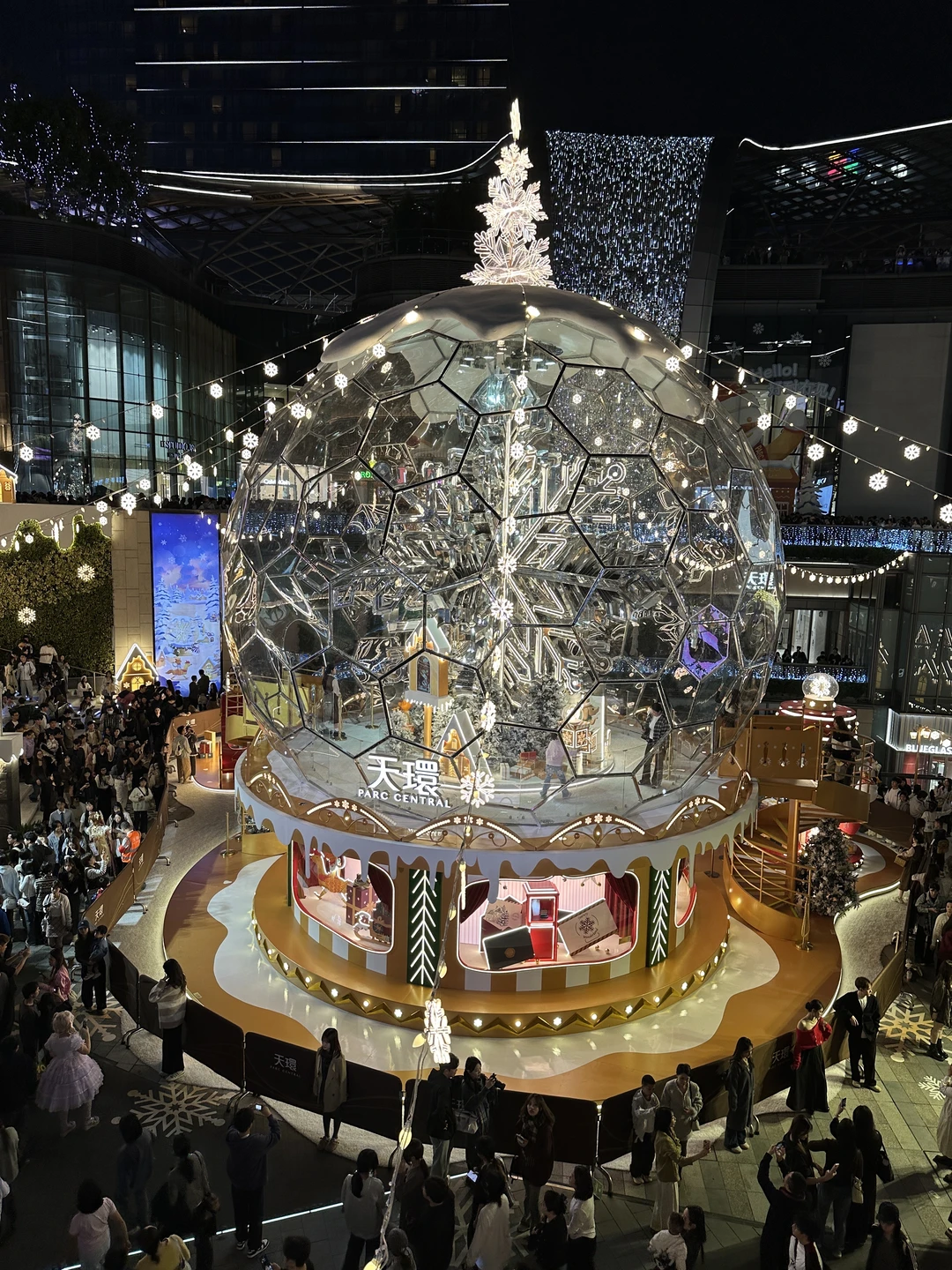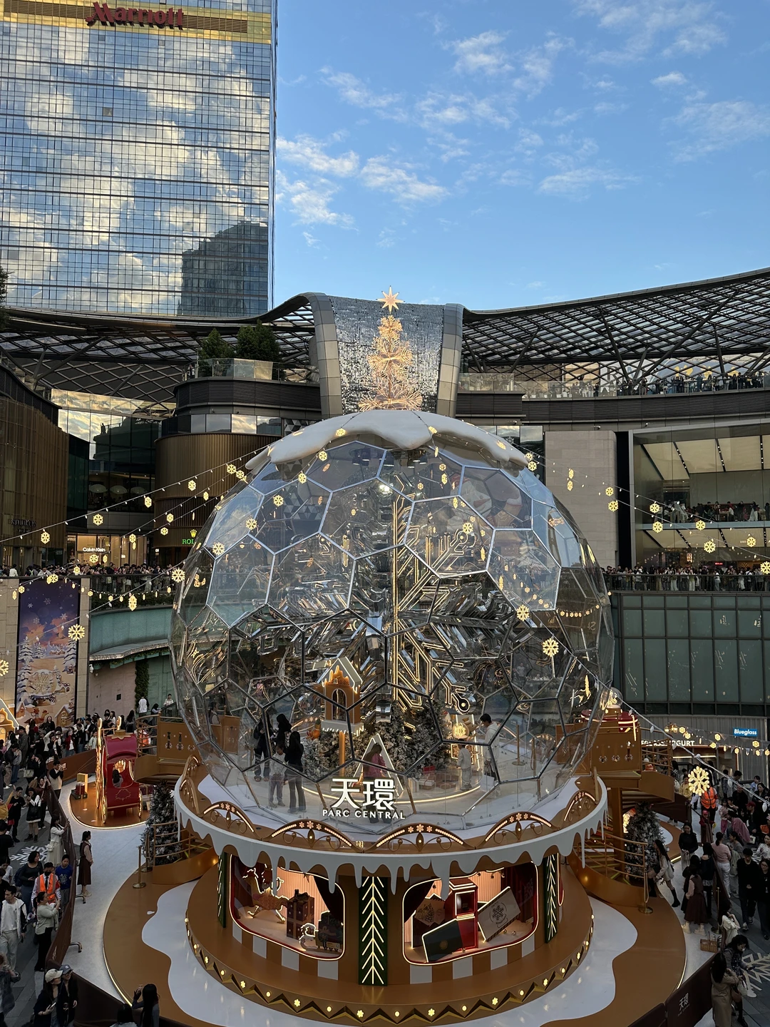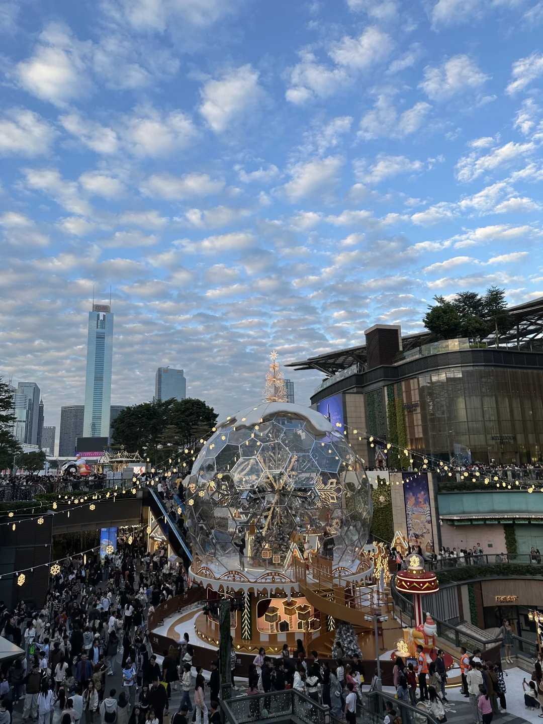 周末去哪儿 谁懂啊家人们!广州圣诞预热也太卷了吧😭 天环广场今年的圣诞限定雪花透明球,直接美到我失语! 下午4点专门赶在日落前冲过去,刚好赶上灯光初亮的时刻✨ 阳光透过透明球体折射出细碎光斑,雪花造型在暖黄光线里温柔到不行 不用刻意找角度,站在广场外围拍全景,连远处的建筑都成了背景板 虽然已经有不少人在打卡,但稍微蹲低一点就能避开人群,出片率100%! 晚上吃完晚饭7点多又二刷了! 夜幕降临后雪花球直接变身发光魔法球🎄 内部的灯光全亮,透过透明外壳看过去,像把整片星空都装了进去 围着球体走一圈,每个角度都好拍,连影子都带着圣诞氛围 忍不住拍了N多张,手机内存直接告急hhh 重点!这个雪花球居然能进内部拍! 看了现场说明,在天环单次消费满588就能凭小票进去[赞R] 内部空间不算大,但拍照巨出片,雪花细节看得清清楚楚 可惜我没达标,只能在外围疯狂抓拍,下次一定要冲内部! 真的要夸爆天环的圣诞审美! 无论是白天的清新治愈,还是晚上的梦幻璀璨,都戳中我的心巴💖 虽然全程都是人人人,但架不住它好看啊! 建议宝子们要么早点去,要么像我一样赶日落和夜晚两个时段 不同光线拍出来的感觉完全不一样,都超绝! 已经开始期待圣诞节当天的氛围了,广州的圣诞仪式感被天环拿捏了~ 还没去的宝子赶紧冲,绝对是今年圣诞最值得打卡的点!