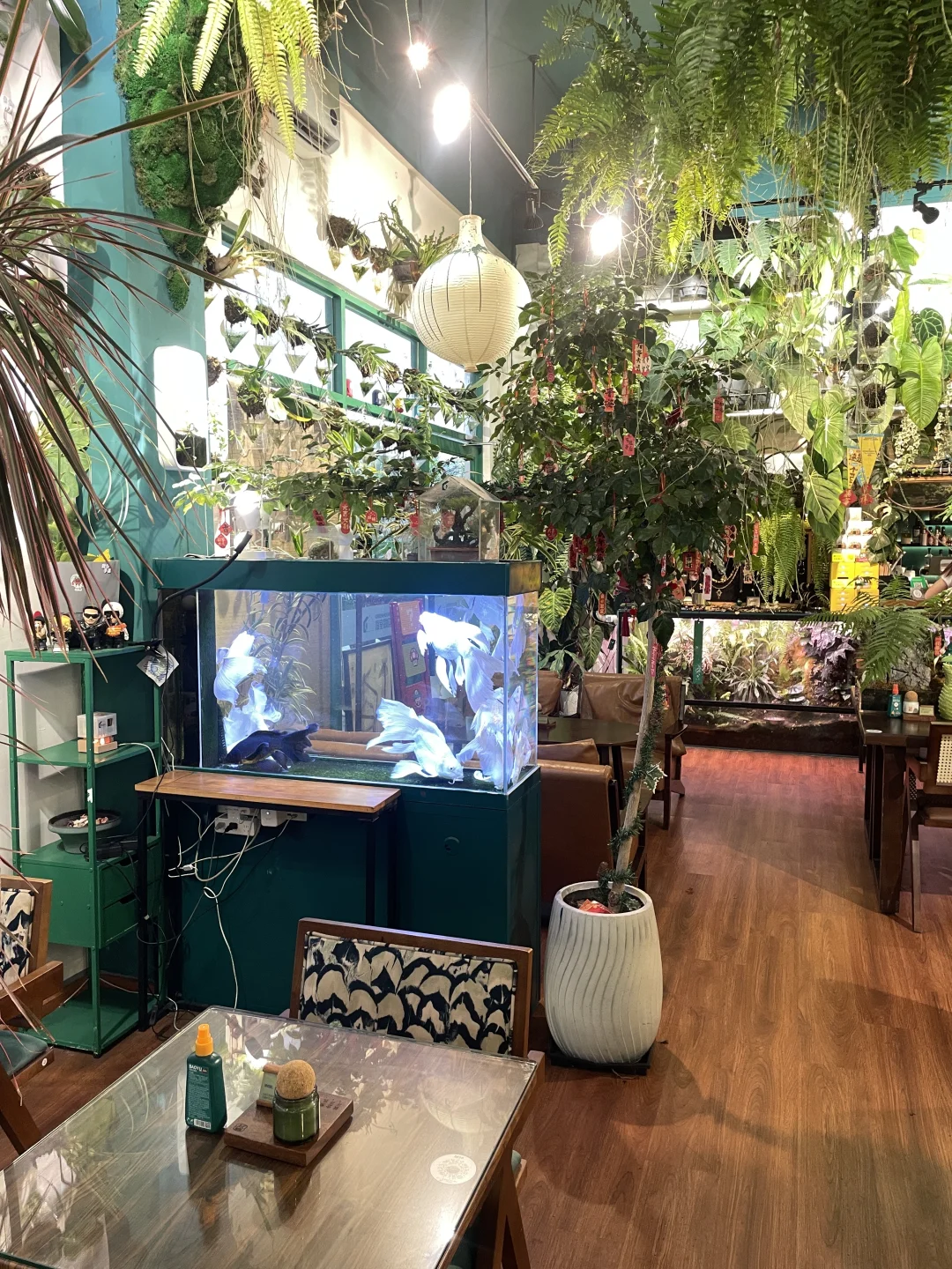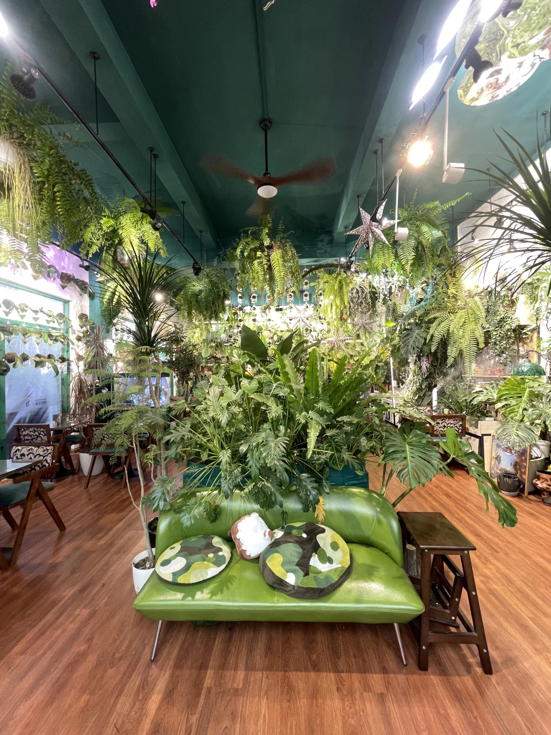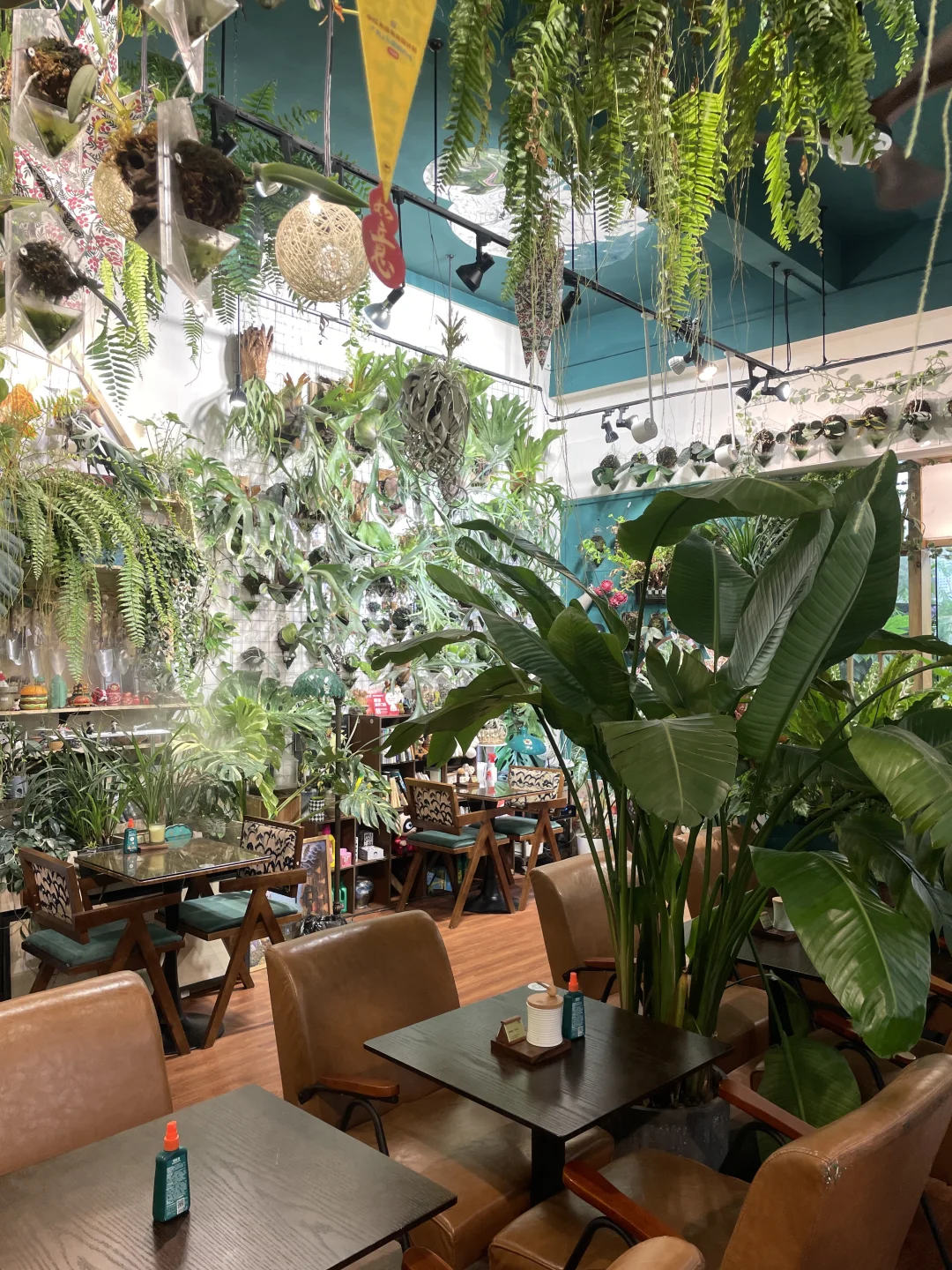 100家探店计划 广州这家植物园咖啡店美到窒息! 姐妹们!发现一家藏在天河的秘密花园!刚进门就被满墙的热植震撼到,龟背竹、琴叶榕、空气凤梨层层叠叠,连天花板都垂着藤蔓,感觉下一秒就要跳出穿背带裤的兔子先生🐇 整个空间被热带雨林植物包围,仿佛瞬间穿越到亚马逊丛林🌿 阳光透过玻璃顶棚洒在叶片上,光斑在地面跳格子,连呼吸都带着青草香。最绝的是角落的藤蔓秋千,坐上去轻轻摇晃,头顶是垂下的常春藤帘幕,随手一拍都是电影海报📸 店里有两只超治愈的布偶猫!一只叫拿铁,一只叫摩卡,毛软得像云朵,会主动蹭人撒娇🐱 拿铁特别喜欢蹲在甜品柜上监督制作,摩卡则爱趴在小木马旁边当镇守神兽,摸它们的时候还会发出拖拉机般的呼噜声~ 点了招牌的牛油果拿铁,绵密的奶泡混合牛油果的清香,口感绝了🥑☕️ 甜品选了草莓巴斯克,酸甜的草莓酱裹着浓郁芝士,搭配迷迭香装饰,颜值和味道双在线!偷偷说,餐具是复古风的陶瓷杯碟,拍照超上镜✨ 二楼有个秘密观景台,能俯瞰整个温室全景,热带植物在眼前铺成绿色海洋🌊 下午三点左右阳光斜射进来,光影层次绝了!建议穿浅色裙子来,分分钟拍出森系大片~ Tips:周末人比较多,建议工作日下午来包场感更强!店里还有热植周边卖,小盆栽和园艺工具都超精致,买一个带走当纪念也不错~ 快带上闺蜜来打卡,一起做朋友圈最靓的仔!💕 地址就在华南植物园地铁站附近,记得收藏这条攻略,迷路了随时翻出来看呀~