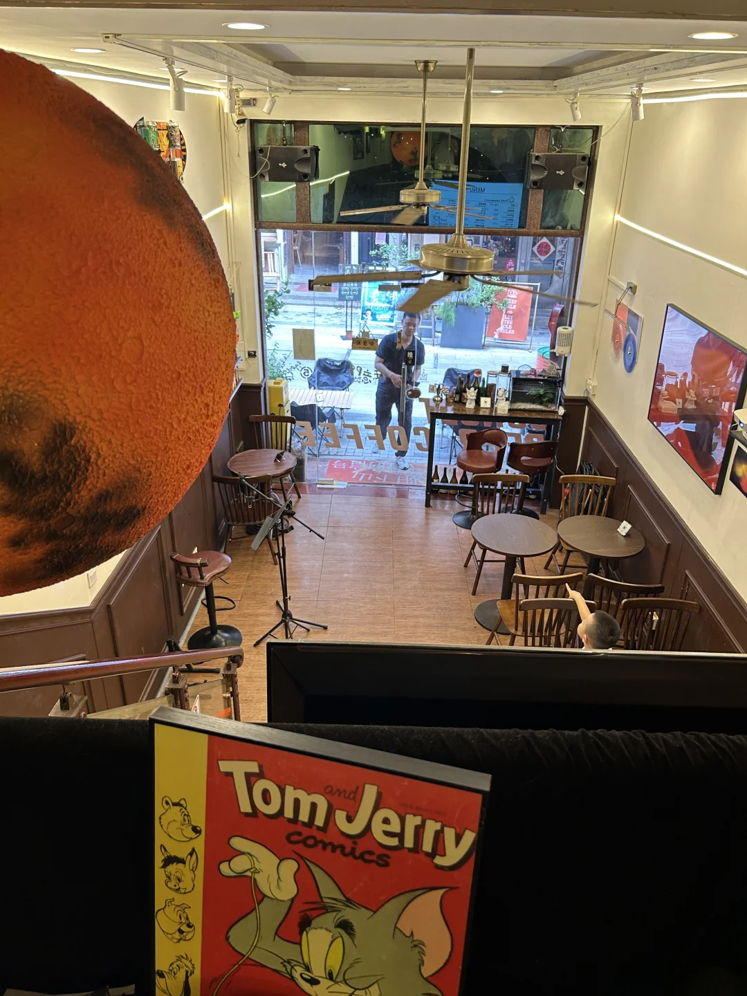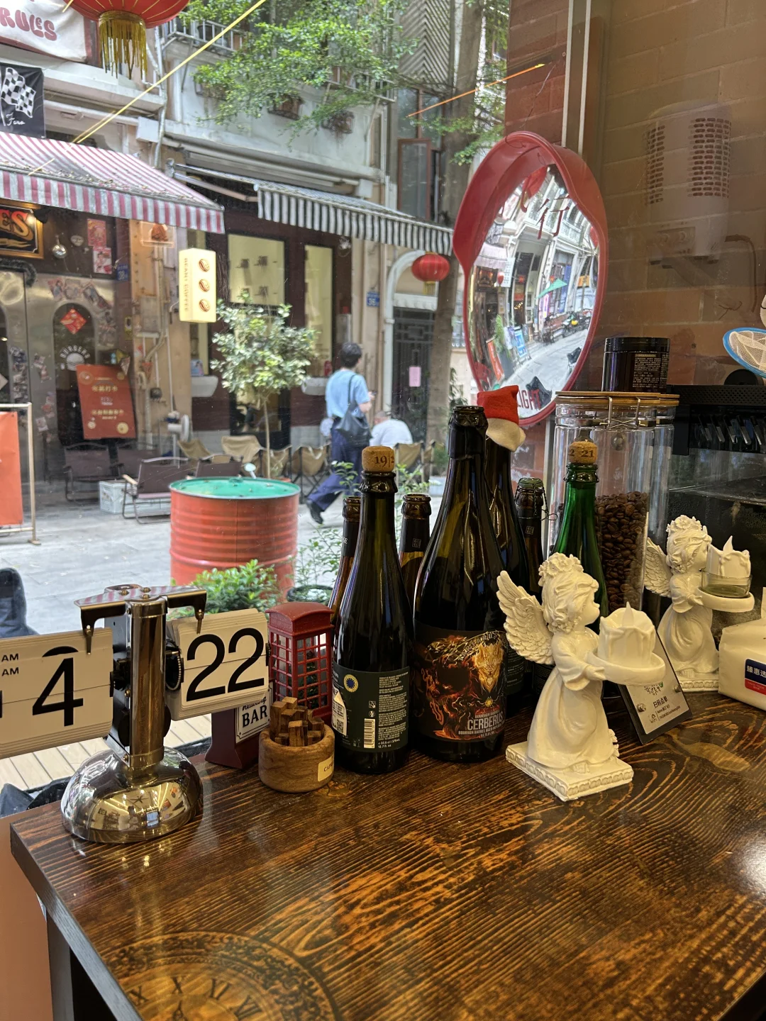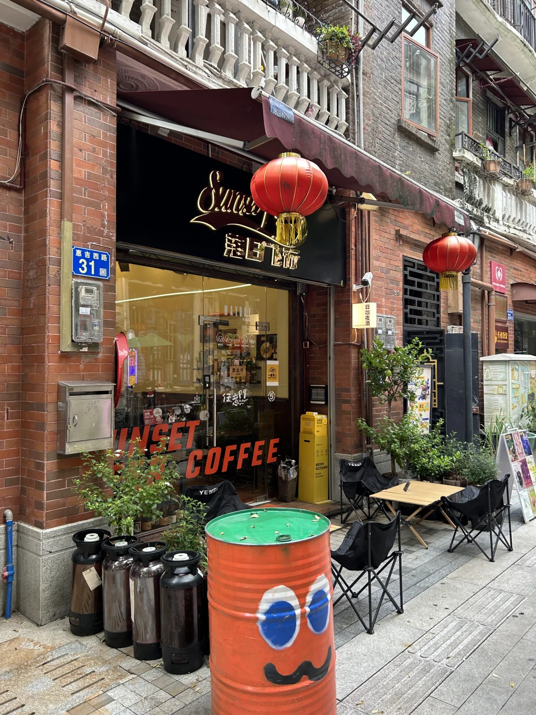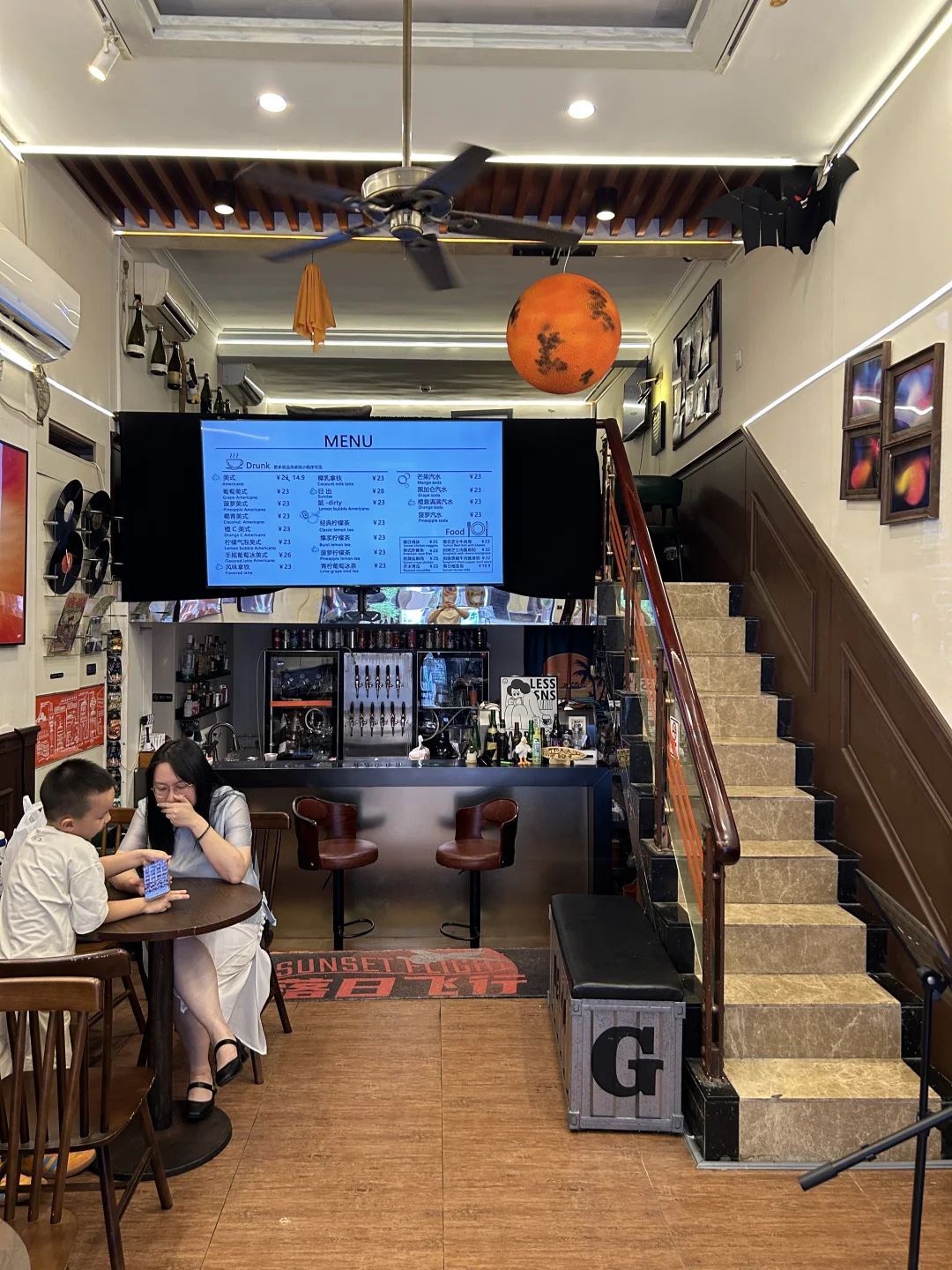 100家探店计划 家人们!今天带你们解锁广州老城区的宝藏玩法——藏在西门口骑楼群里的「落日飞行」酒吧咖啡店!从地铁站出来步行不到10分钟就能钻进这个时空胶囊,白天是治愈系咖啡馆,夜晚化身微醺小酒馆,一篇攻略带你玩转日咖夜酒的双重快乐✨ 📍【位置玄学大公开】 从西门口地铁站D口出来往左走,沿着中山六路的骑楼街晃荡300米,看到写着「惠吉西」的蓝色路牌右转。重点来啦!!!注意右手边的金属小门🚪,推开门瞬间仿佛掉进电影里的复古机舱——裸露的红砖墙上挂着皮质飞行夹克,天花板垂落的复古煤油灯在水泥地面投下暖黄光晕,吧台小哥正在用老式手摇磨豆机磨豆子,空气里飘着柑橘与焦糖交织的香气☕️ 💫【环境细节控狂喜】 ▪️工业风吧台:金属支架搭配胡桃木台面,吧台上摆着复古打字机和地球仪,随手一拍就是美式复古大片 ▪️落日灯墙:整面墙的渐变日落灯太绝了!下午4点后阳光斜斜照进来,光影在水泥地上流淌,建议穿浅色针织衫来拍发光发丝 ☕️【饮品点单不踩雷指南】 ⚠️划重点:白天咖啡晚上酒,菜单会随时间切换哦! ✅落日航班 分层超美的特调咖啡!我点的是葡萄冰美式,淡淡的葡萄香味,还有咖啡结合在一起非常好喝,回味无穷,建议搭配店里自制的自制的烤鸡块,咸甜交织绝了!