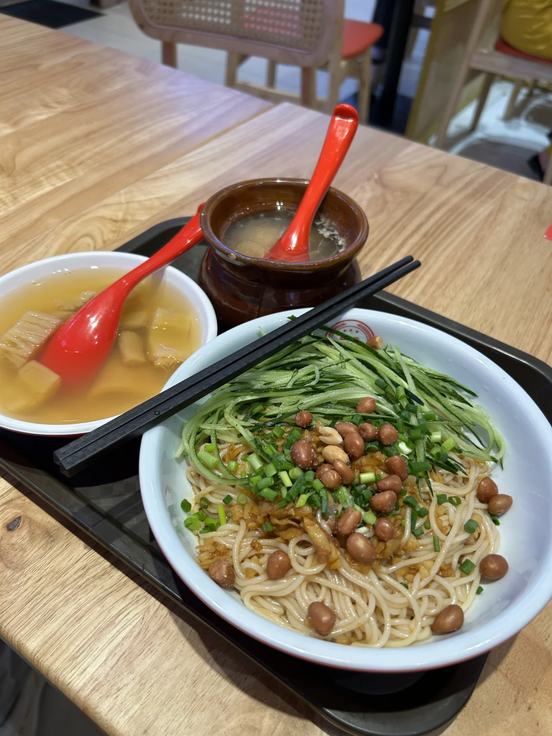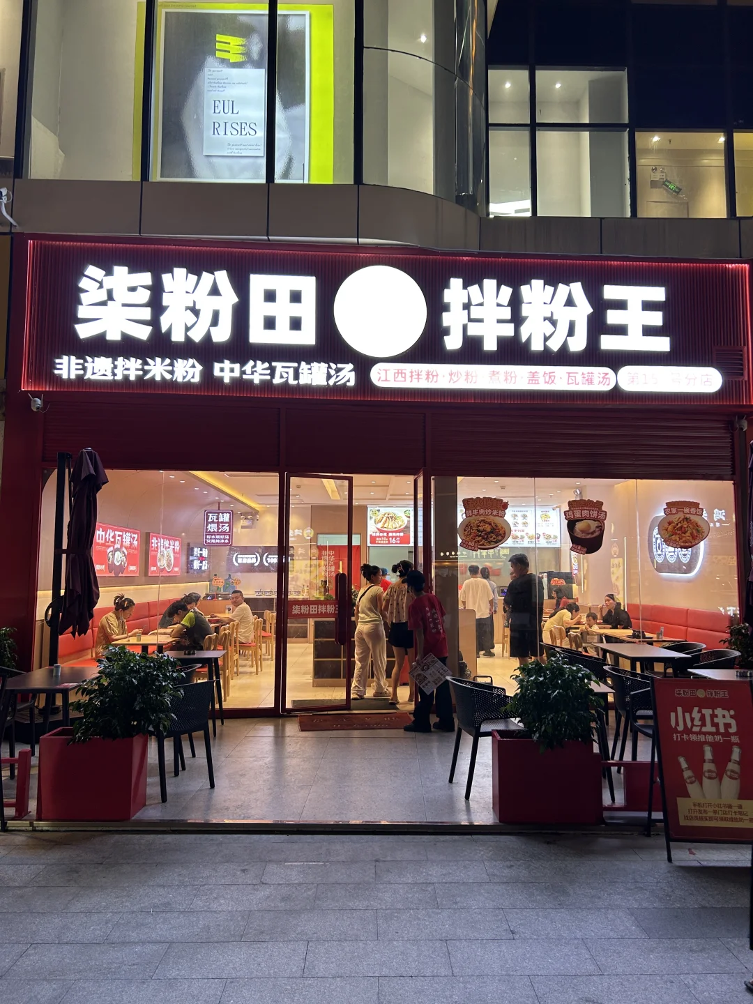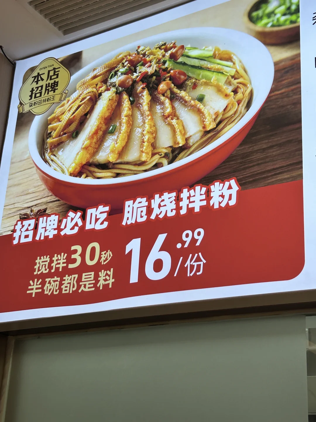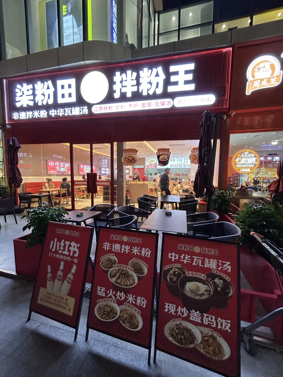 100家探店计划 晚上冲白云太和地铁站,本来奔着太和金铂天地去的,还以为得钻进商场里扒拉吃的,结果刚到门口一转头——天!柒粉田•拌粉王的招牌也太扎眼了吧!红亮亮的字老远就能瞅见,就藏在一楼门口右边,果断放弃逛商场,直接拐进去!😋 一推开门直接惊到!这家店也太大了吧! tables摆得整整齐齐,满当当全是干饭人,筷子碰撞的声音、嗦粉的吸溜声混在一起,烟火气直接扑脸上~找了个空位坐下,服务员小姐姐超热情,递菜单时还贴心说“经典拌粉套餐点得最多”,那必须听劝,直接安排!🥢 没等几分钟,我的“快乐三件套”就上桌了!先冲经典南昌拌粉——粉裹着秘制酱汁,刚拌开就闻到花生碎的脆香、萝卜干的咸鲜,还有脆哨嚼着咯吱响!粉滑溜溜的,裹满酱汁嗦进嘴里,咸香中带点微辣,本碳水脑袋直接炫到停不下来,第一口就惊到:这也太像在南昌吃的正宗味儿了吧!🍜 接着喝瘦肉鸡蛋瓦罐汤!汤炖得超级浓,掀开盖子就飘着肉香,瘦肉嫩得一点不柴,鸡蛋吸满了汤汁,咬一口爆汁!一口粉一口汤,完全不觉得干,鲜得我连喝两碗都不够,感觉整个身子都暖起来了~🥣 最后用木薯糖水收尾绝了!木薯煮得粉粉糯糯的,咬着软fufu,糖水甜得刚刚好,不齁不腻,解完拌粉的咸香,还能清爽润胃,喝完感觉连打嗝都是甜的,幸福感直接满格!🍧 吃到撑到扶墙出才发现,这家居然是全国连锁的!瞬间开心到跺脚——以后不管去哪个城市,想吃这口正宗南昌味都不用愁啦!下次一定要拉上闺蜜们再来,让她们也尝尝这“嗦一口就上头”的神仙美味,绝对要把这里列成我的太和私藏食堂!🎉