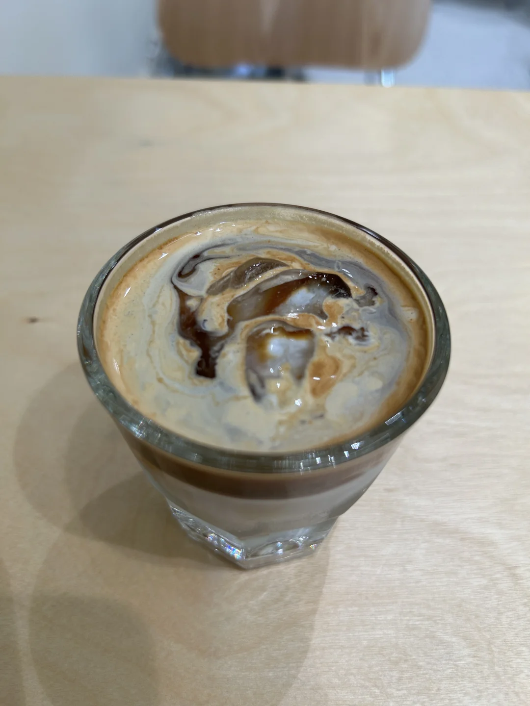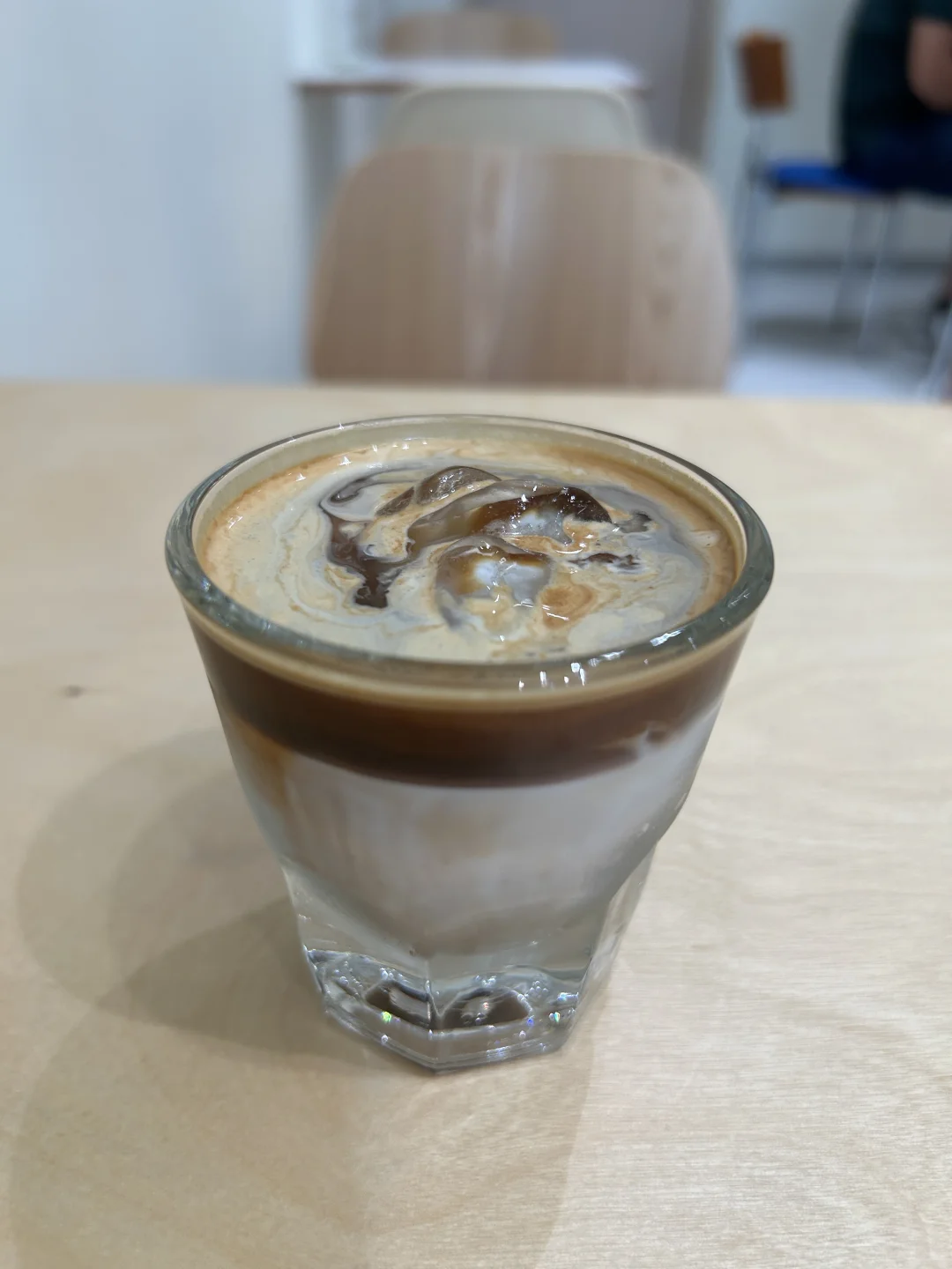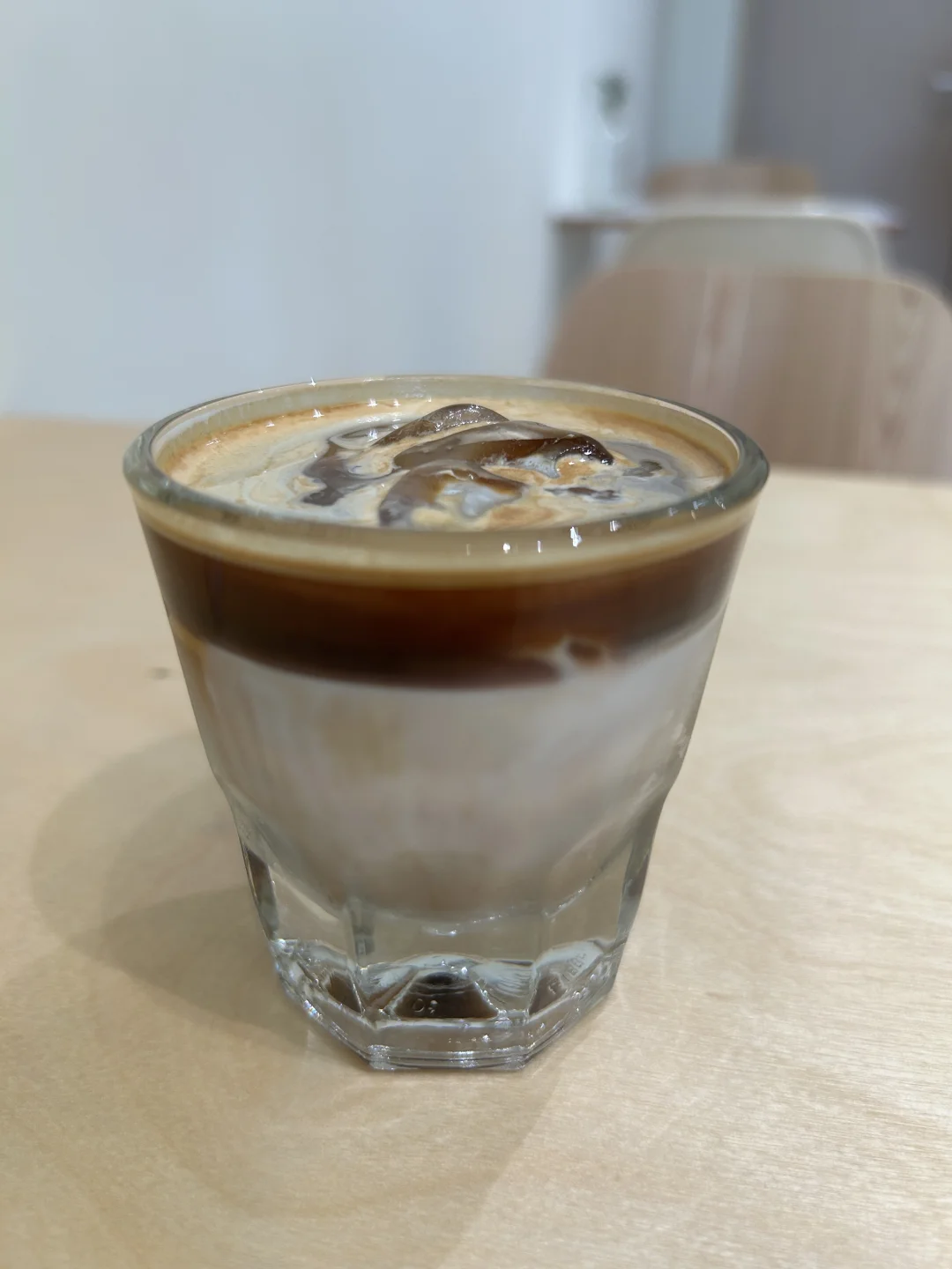 100家探店计划 谁懂啊!前一晚熬大夜赶稿,早上出门整个人像没上发条的木偶,结果在中西塱地铁站附近挖到“反正cafe”,一杯拿铁直接把我从“昏沉模式”拽了出来,这趟探店值爆了! 出中西塱地铁站跟着导航走超省心,也就400来米的路,不用绕弯弯找小巷子。远远就看到奶白色的门店,“反正cafe”的黑色招牌嵌在原木框里,清爽又好认,路痴也能轻松找到,完全不用怕走丢~ 推开门先被装修戳中!店里是浅原木+奶白的搭配,暖黄小灯挂在天花板上,连桌椅都是圆角设计,看着就软乎乎的。最吸睛的是操作台那台银色咖啡机——亮闪闪的机身,线条超流畅,光看着就觉得“这咖啡肯定不一般”✨ 透过玻璃从外面看,整个店像个精致的小盒子,忍不住想赶紧进去坐! 点的拿铁端上来时,我直接掏出手机拍照!下面是丝滑的淡奶色牛奶,上面浮着一层深褐的咖啡液,分层超明显,像给杯子里装了渐变晚霞☕️ 加了冰块在广州这黏糊糊的天气里,第一口下去冰爽直窜天灵盖,咖啡香混着奶香超顺口,一点都不苦不涩,咽下去还有淡淡的回甜~ 前一晚愣是熬到凌晨两点,早上出门眼睛都快睁不开,喝了半杯这拿铁,脑子瞬间“开机”!下午接着跑了两家店探店,全程没打哈欠,连朋友都说“你今天状态怎么这么好”——这提神效果真的绝了,比我之前喝的速溶咖啡强太多! 坐了会儿发现店里人不算多,有几个学生党在角落看书,还有上班族买了咖啡打包,氛围安安静静的,不管是久坐还是打包都很舒服。老板也很亲切,问要不要加奶泡时还笑着说“我们家牛奶用的是鲜牛乳,放心喝”,细节感拉满~ 给宝子们划个小重点: • 营业时间:早上8点就开门啦,早八人买杯咖啡去上课超方便 • 人均:拿铁25左右,在广州算平价,性价比很可 • 隐藏彩蛋:窗边座位能晒到早上的太阳,喝着咖啡晒太阳超治愈 这趟“反正cafe”探店真的超圆满!喝到好喝的咖啡,还get了一整天的精气神,走的时候特意跟老板说“下次要试美式”,已经开始期待二刷了~西塱附近的宝子,没喝过的快冲,不好喝你来找我(不是)!
