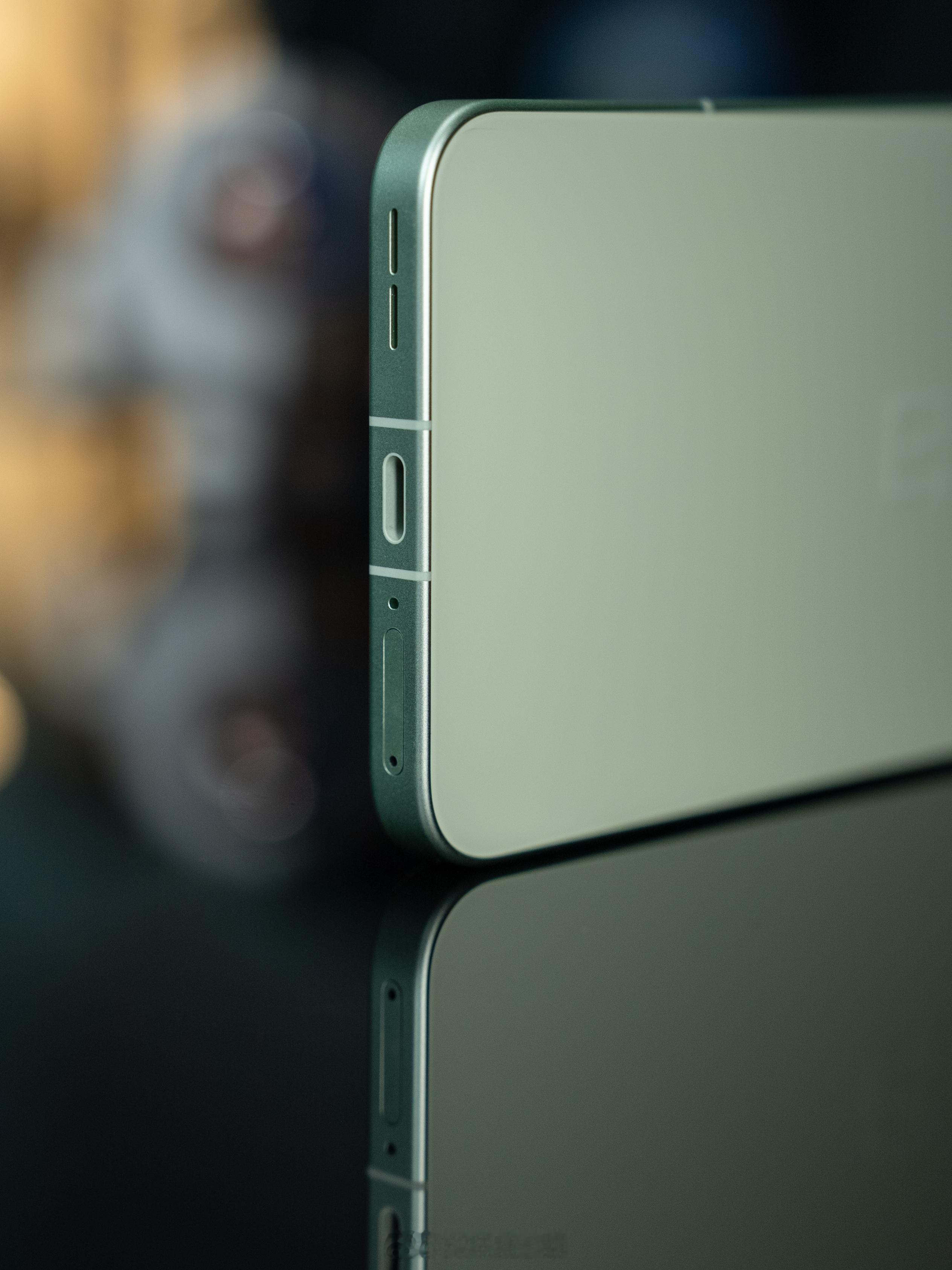 这次一加 Ace 6T 的掠影绿像它的颜色一样,在清爽下,透着一股云淡风轻,后盖的玻璃工艺,让触感细腻又高级,金属中框过渡的顺畅,握持手感很舒服,然后开到河边,坐上折叠椅,吹着风,喝口茶,打打游戏,刷刷视频,有点偷得浮生半日闲,过云掠影雁无声的意思了