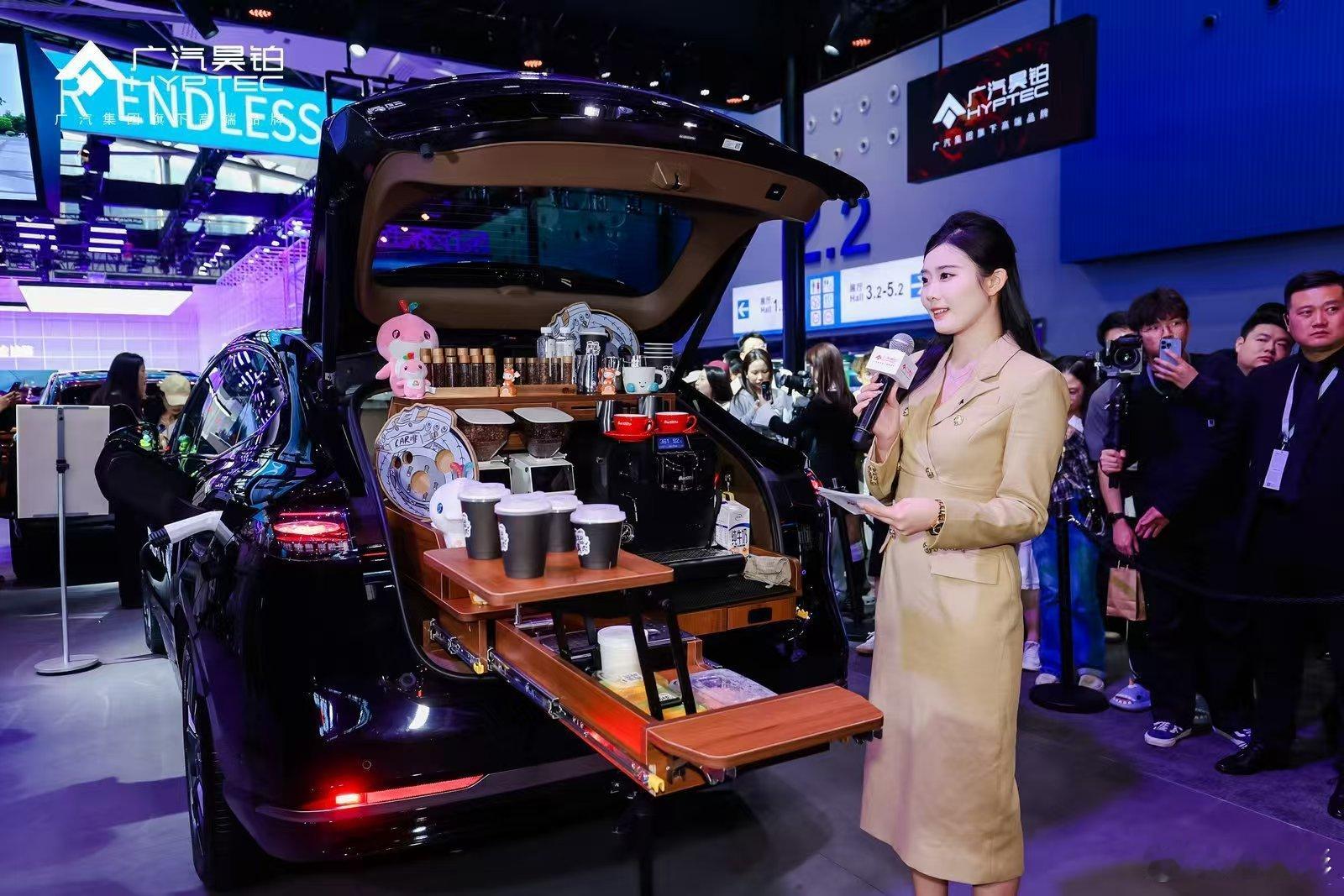 广州车展最火爆打卡点!广汽昊铂 HT 670L后备箱太实用了广州车展惊现一台超会"装"的SUV!昊铂HT凭借前后备箱+大五座的神仙设计,直接把实用性和趣味性都玩出了新高度~现场被可爱的大湾鸡们"占领",瞬间成为最火爆的打卡点!昊铂HT简直太会了!请来了噗噗叽崎将后备箱打造成了精致的"移动咖啡馆",670L的基础容积轻松装下全套设备。更惊喜的是55L独立前备箱,密封性超好,完美收纳各种原料,让特调制作井井有条!坐进后排更是直接被圈粉,两只超大size的大湾鸡舒舒服服地坐在座椅上,旁边居然还能轻松容纳两个成年人!2935mm超长轴距打造出"移动会客厅",腿部空间近3拳,头部1013mm,配合Nappa真皮座椅和十点按摩功能,这舒适度简直绝了!更让人安心的是825km超长续航+800V高压快充,充电比泡茶还快,让出行永远能量满满!宝子们快冲!11月30日前订车福利能量也同样满格,能参与抽价值万元整车终身质保和尊享服务包等大奖,广汽车主还可以在APP上抽昊铂金标/敦煌盲盒,轻松把“空间魔法师”和豪礼开回家!来广州车展打卡 这个超有趣的"移动茶话会",亲自体验这台"空间魔法师"的独特魅力。我已经在展台等你们来面基啦,错过真的要拍大腿!