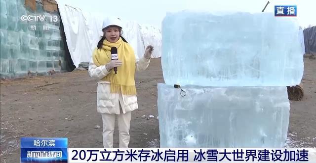 总台记者魏雯雯:我现在就是在哈尔滨冰雪大世界的存冰场,冰垛已经褪去层层保护。这些冰都是上一个冰雪季在大寒节气前后从松花江开采出来的,一共有20万立方米。这是一个什么概念呢?相当于将标准足球场铺上一米高的冰,可以铺满28个。