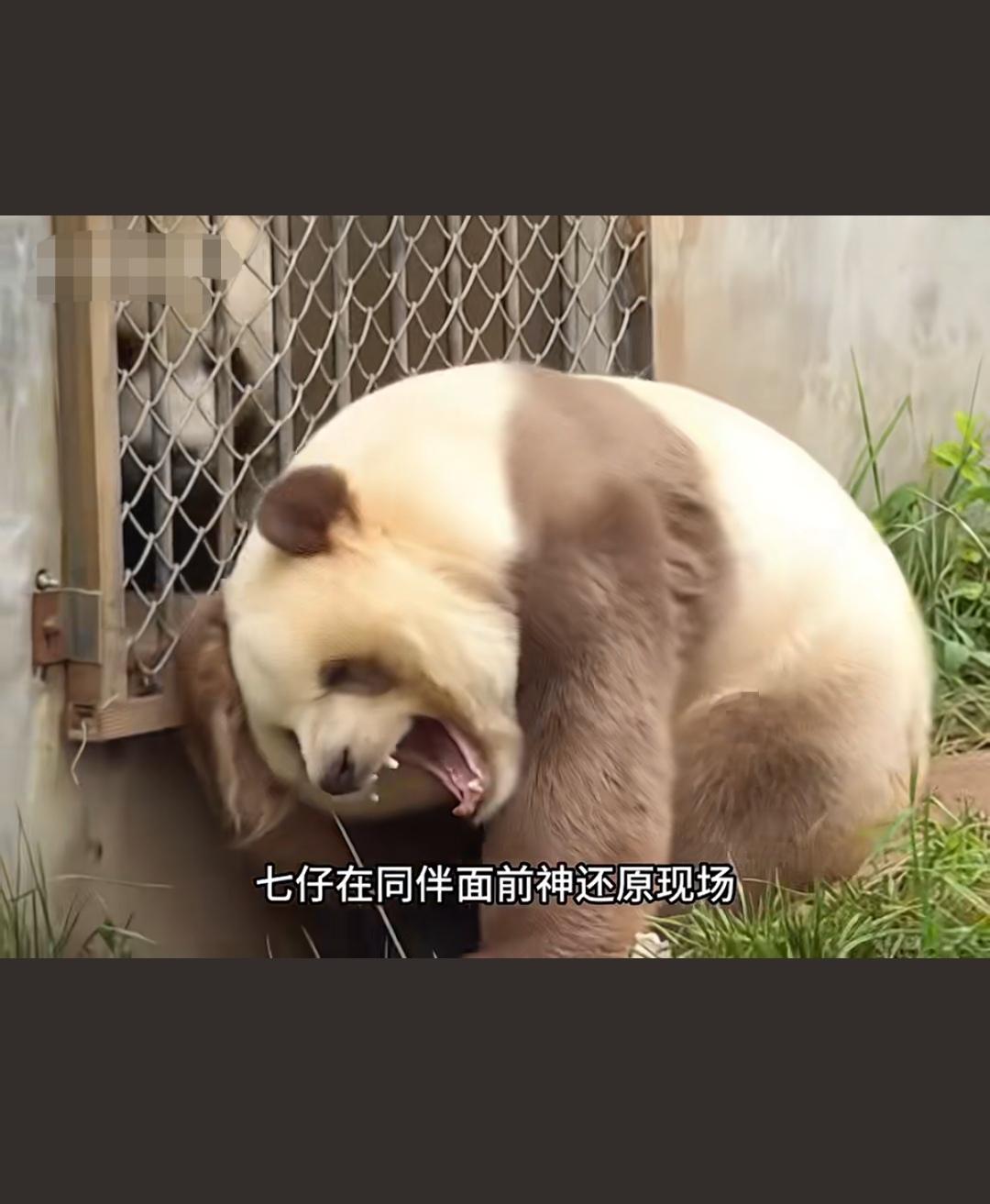 棕色大熊猫七仔:野萌战神自带八百个心眼子 秦岭独苗棕色大熊猫七仔,毛乎乎像裹焦糖,野性超足超会玩。抢食快准狠不手软,见饲养员秒切换乖宝模式,撒娇讨笋两不误,主打一个机灵通透。日常爬树打滚超活跃,自带反差萌,每帧都戳萌点,妥妥的熊猫界“心机小可爱”,治愈所有不开心~