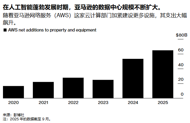 然而,亚马逊也会利用第三方空间,尤其是在进入新市场或需快速应对需求变化时。近年来,公司一直在努力跟上服务使用量增长的步伐,既要支持企业把软件迁移至亚马逊服务器,也要满足训练和运行AI服务的新需求。