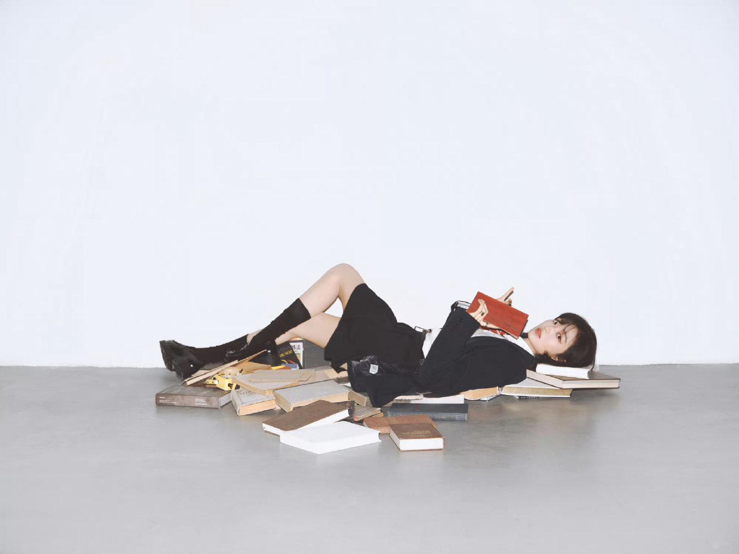 优雅高贵的孙允珠,白色单肩裙,静静地坐在窗边。巧妙地露出一侧精致的锁骨和优美的肩