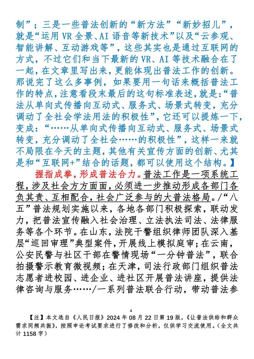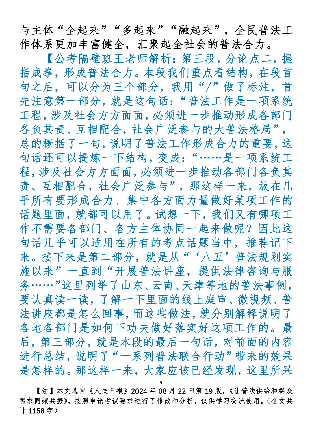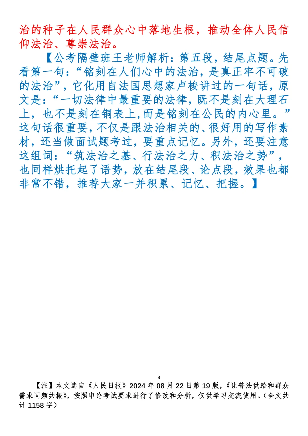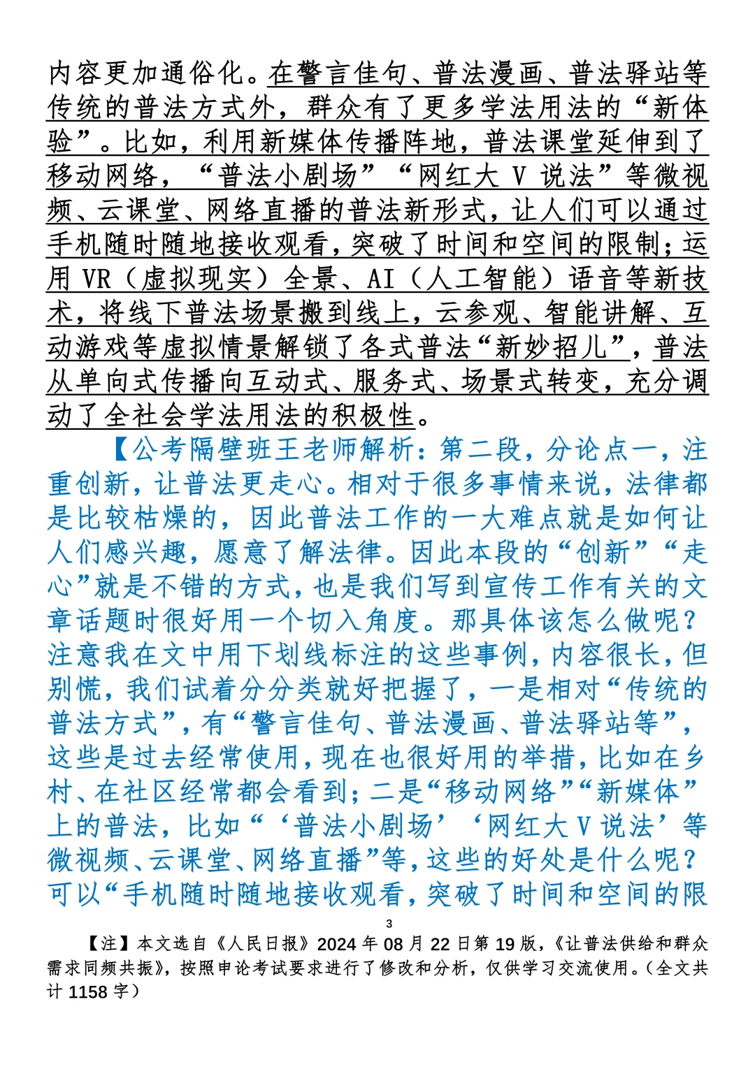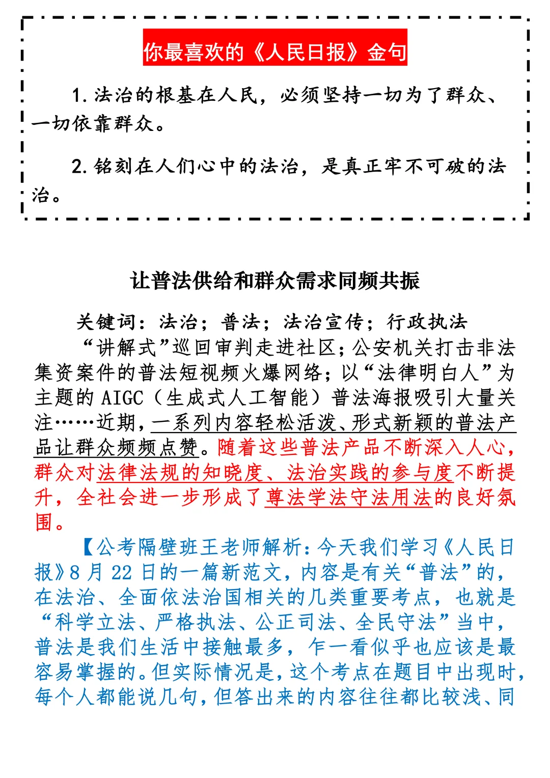 如何抄写:每日抄写文章发在“公考隔壁班王老师”账号,红色字是重点句和结构句,黑色字是正文,蓝色字是解析,大家抄写时不必抄蓝色字。建议先通读全文,做到心中有数再开始抄写,效果会更好。 关于文章:抄写文章来源于人民日报,但每篇文章我都根据申论考试要求进行了修改:一是重写或修改开头、结尾;二是统一段首句句式结构;三是调整段落字数,使文章结构更均衡;四是简化复杂长难句,使之更具可模仿性。每篇文章无论修改多少,都是基于申论考试要求,毫无对人民日报文章品评之意。(此处致敬人民日报)