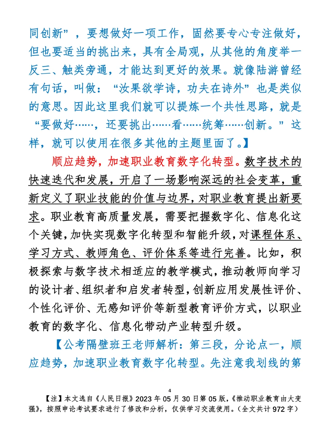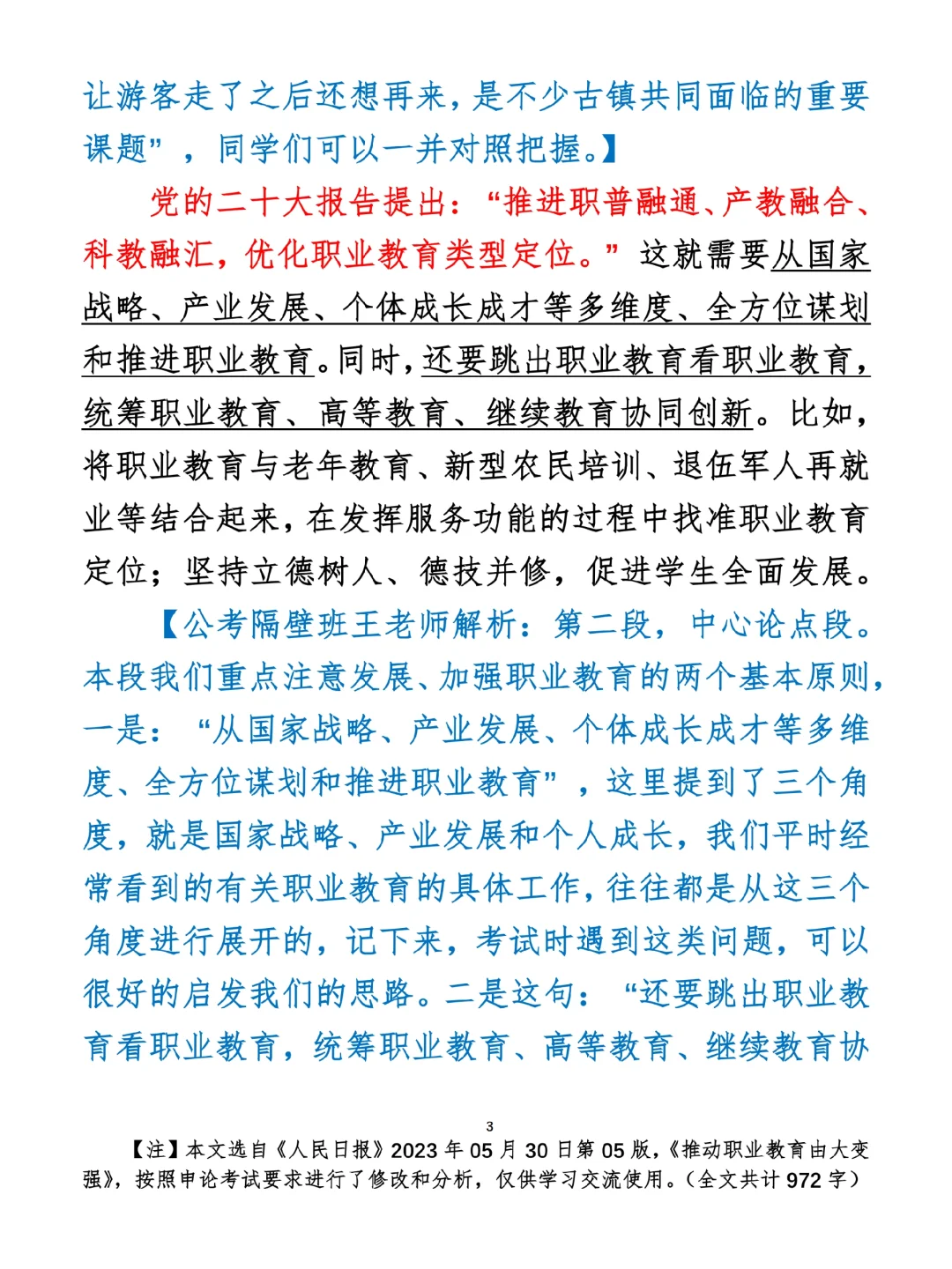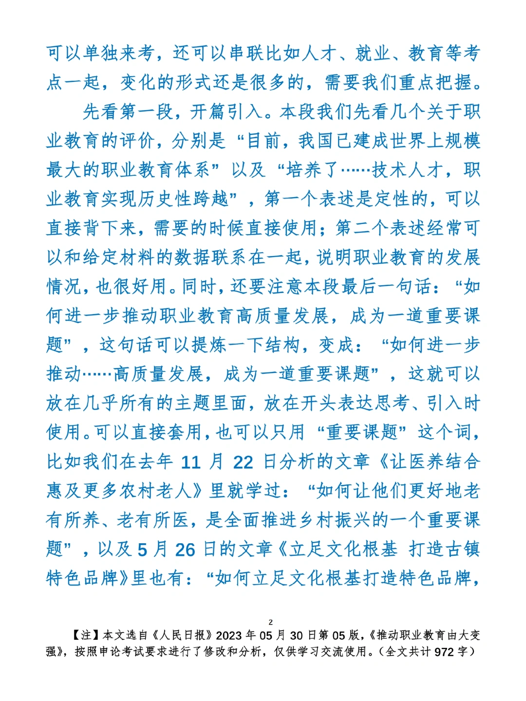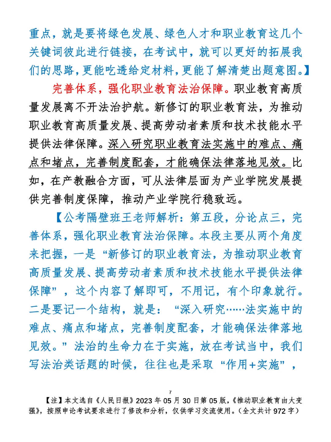 如何抄写:每日抄写文章发在“公考隔壁班王老师”账号,红色字是重点句和结构句,黑色字是正文,蓝色字是解析,大家抄写时不必抄蓝色字。建议先通读全文,做到心中有数再开始抄写,效果会更好。 关于文章:抄写文章来源于人民日报,但每篇文章我都根据申论考试要求进行了修改:一是重写或修改开头、结尾;二是统一段首句句式结构;三是调整段落字数,使文章结构更均衡;四是简化复杂长难句,使之更具可模仿性。每篇文章无论修改多少,都是基于申论考试要求,毫无对人民日报文章品评之意。(此处致敬人民日报)