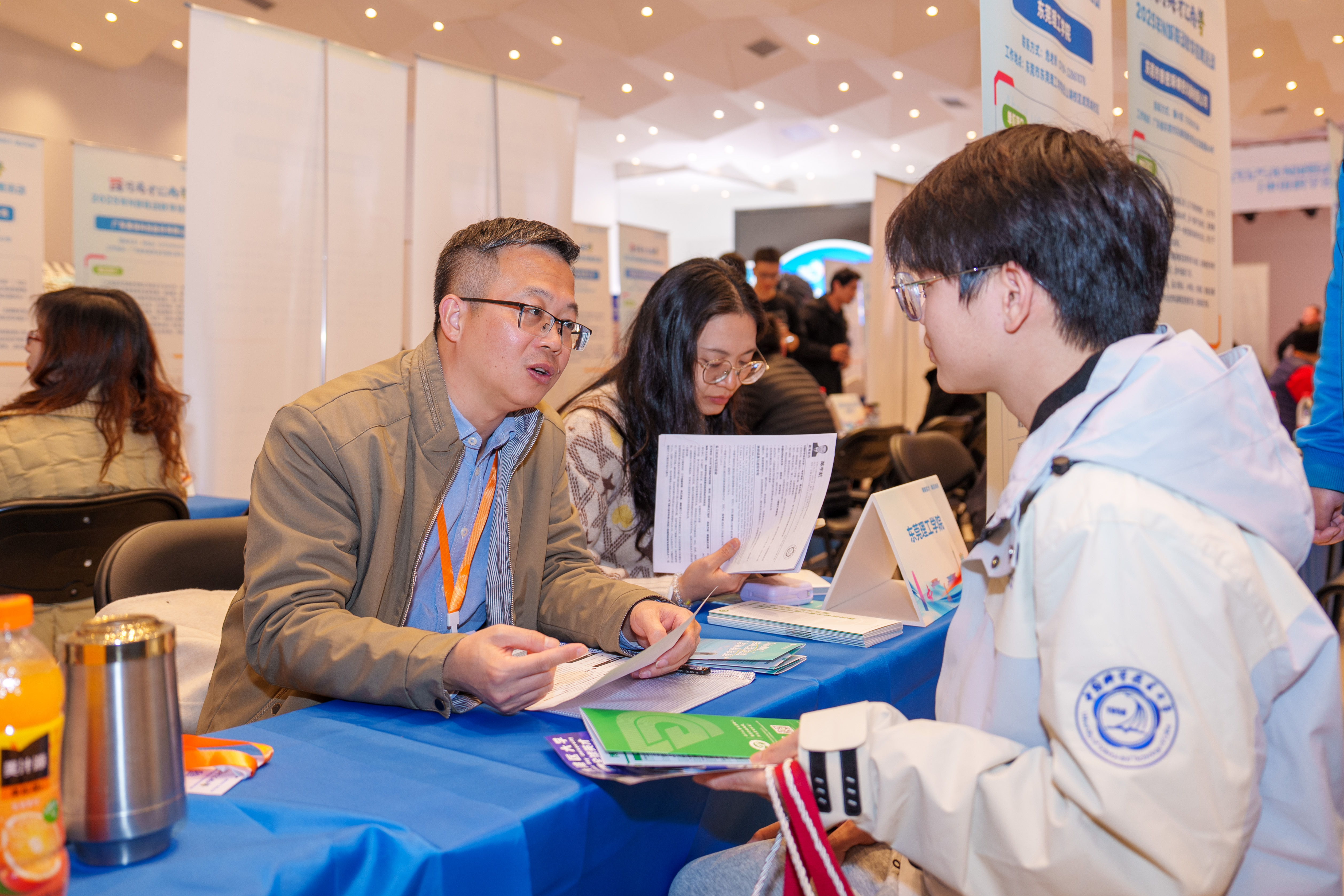 招聘会甫一开始,展厅里便迅速热闹起来。求职学生在展位间穿梭,不仅看岗位、看待遇,也在感受城市的发展脉动。