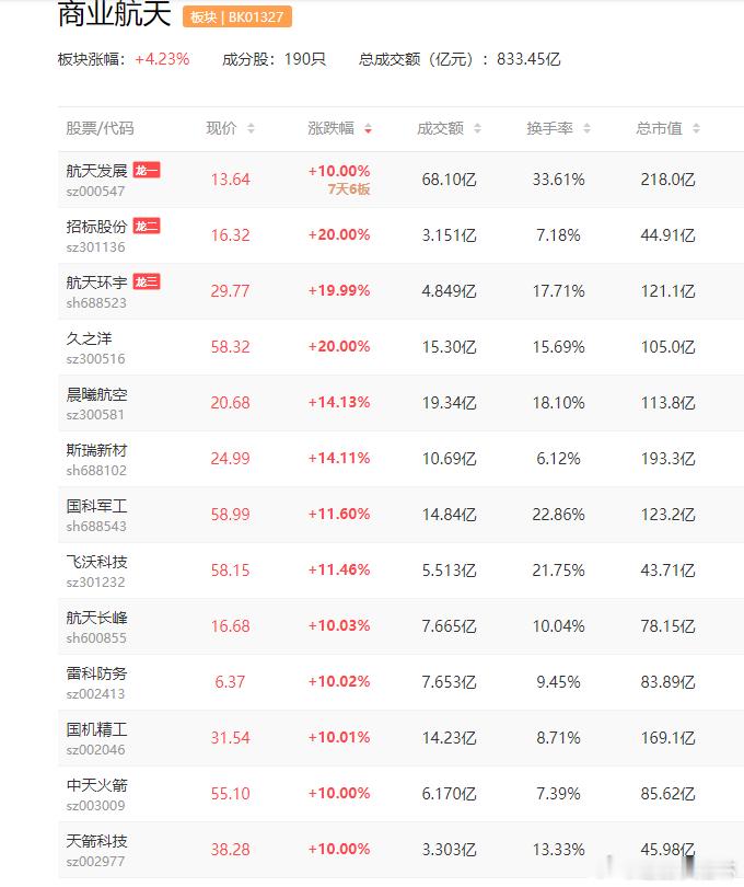 商业航天+军工商业航天+军工:航天动力、雷科防务、航天环宇、上海港湾、天箭科技、航天长峰、中天火箭、国机精工军工+船舶:中船防务、久之洋、中国海防、江龙船艇海西+商业航天+军工:招标股份、航天发展军工:长城军工