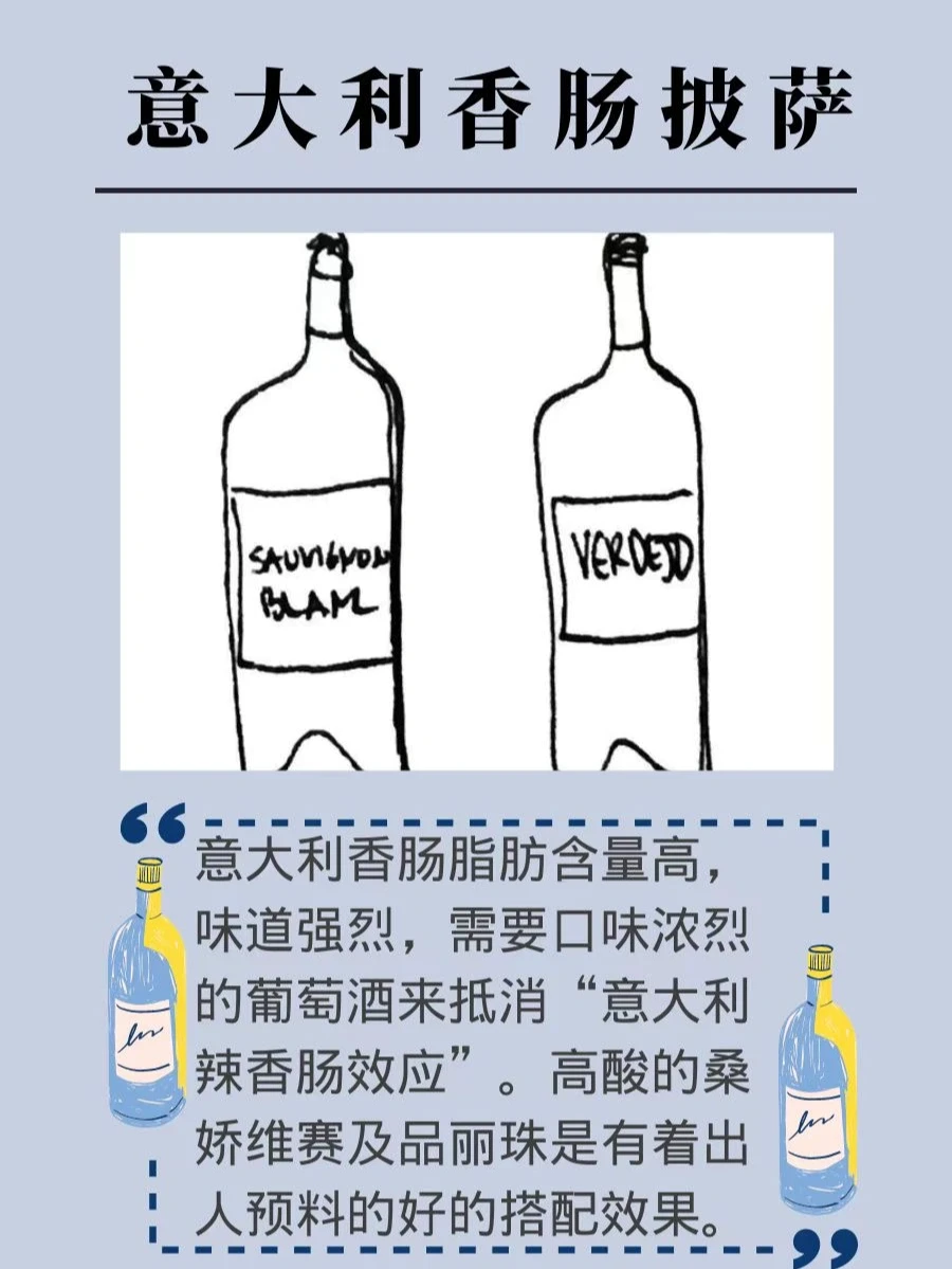 🍱理由:意大利香肠脂肪含量高,味道强烈,需要口味浓烈的葡萄酒来抵消“意大利辣香肠效应”。高酸的桑娇维赛是经典选择,而品丽珠是有着出人预料的好的搭配效果。