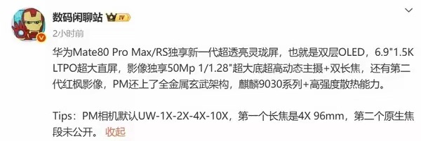 华为Mate80 Pro Max这配置也太狠了!6.9英寸双层OLED灵珑屏,亮度能飙到8000尼特,还有50Mp超大底+双长焦+第二代红枫影像,麒麟9030+全金属玄武架构,性能和散热稳得一批,真的很期待25号的发布会!你觉得它会是今年最强旗舰吗?