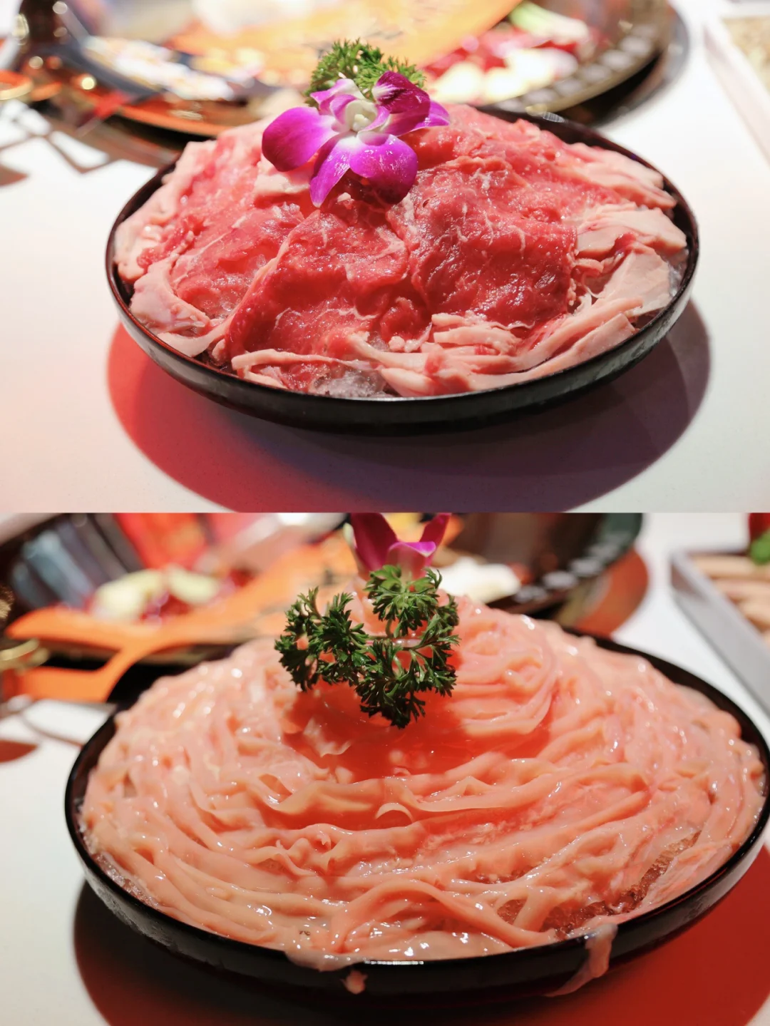 不同于寻常火锅店的冷冻肥牛,他家采用现点鲜切的方式,鲜肉的汁水得到最大限度的保留!