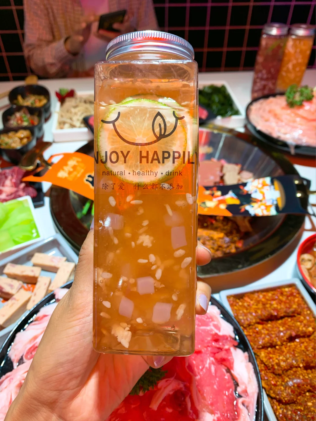 我选的蜜桃🍑味,颜值满分,色泽诱人,猛吸一口,入口冰凉酸甜,还有果冻的口感,解辣爽口神器!