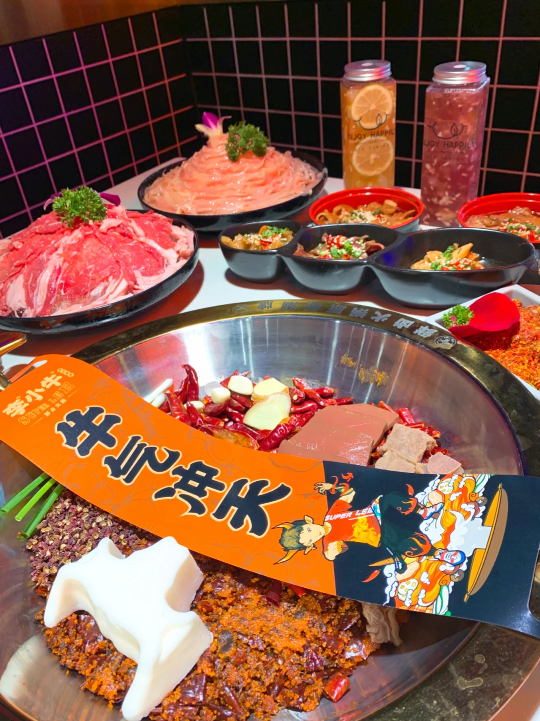手工炒制的锅底加了鸭血、牛小排,料超多超丰富。开锅满满的仪式感,揭开的一瞬间,店里的小伙伴儿还会说“李小牛祝大家财如牛毛,牛气冲天!”