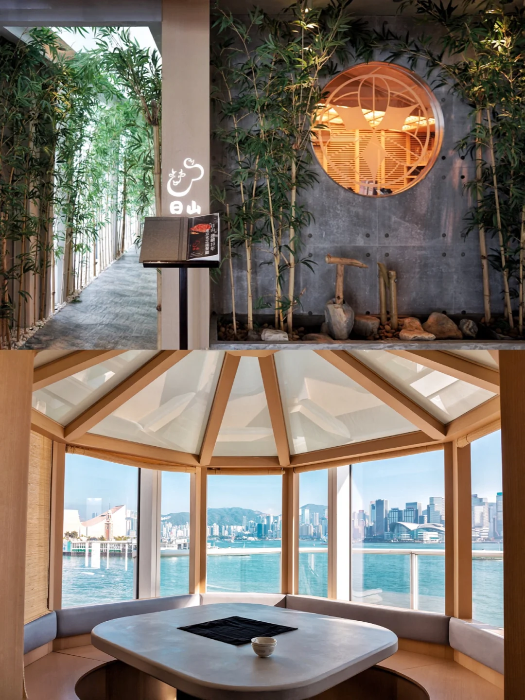🍴日山 Hiyama 📍尖沙咀海港城海运大厦三楼OTE302号铺 . 🥢【关于餐厅】 日山Hiyama1912年便创立了肉店,之后才有了寿喜烧餐厅,已经连续11年获得米其林一星。而海港城的分店也是日山首设海外分店,店内以山形米泽牛和黑毛和牛为主。在就听闻日山和牛的名声,怎可错过? . 🥢【关于和牛和价格】 一般和牛寿喜烧餐厅的要价不菲。先前我很喜欢的Sukiyaki Mori的dinner set不含服务费就是1488元一位。日山则相对亲民很多,分为松、竹、梅套餐。 1⃣️日山·松:988港币一位(A5黑毛和牛肉眼2片) 2⃣️日山·竹:688港币一位(A5黑毛和牛西冷2片) 3⃣️日山·梅:488港币一位(国产和牛西冷) 4⃣️午市:午市的lunch set则更为划算。我们叫了两份A5黑毛和牛肉眼,一份两片,单价438港币。我们还叫了朴叶味增和牛西冷,单价358港币,非常满足! . 🥢【关于味道】 1⃣️前菜(图4):蒸蛋、酱菜、慢煮冬瓜、梅子jelly。 蒸蛋很滑,也很鲜甜。最喜欢梅子Jelly,非常开胃,甜而不腻。 2⃣️朴叶味增和牛西冷(图5) 曾经度过一篇蔡澜食评报道,他最爱“朴叶味增烹饪法”。这是日本岐阜县地道的烹调方法。即将和牛和味增一起在朴叶上烧烤,和牛便更能保留肉汁,并带上朴叶的香味。果然,味道真的很赞。 3⃣️A5黑毛和牛肉眼寿喜烧 先煮蔬菜五盛(洋蔥大蔥、水菜、冬菇、蒟蒻面和豆腐),再加上A5黑毛和牛肉眼,配上日本日山本店直送的寿喜烧酱油,由“女将”调制。和牛蘸上蛋液,滋味浓郁滑溜,入口即化,简直是舌尖高潮。 . 🥢【关于环境】 很喜欢这家店的装修。海运大厦2018年底重新装修开放以来,引进的餐厅都很有品位。日山也不例外。门口是一片郁郁葱葱的竹林,烟雾缭绕。室内很简洁利落,落地窗,维港景色,很舒服。 . 🥢我是一个实打实的“牛迷”,其实环境什么的都已经不太重要,重要的是食物本身带来的欢愉,无与伦比。