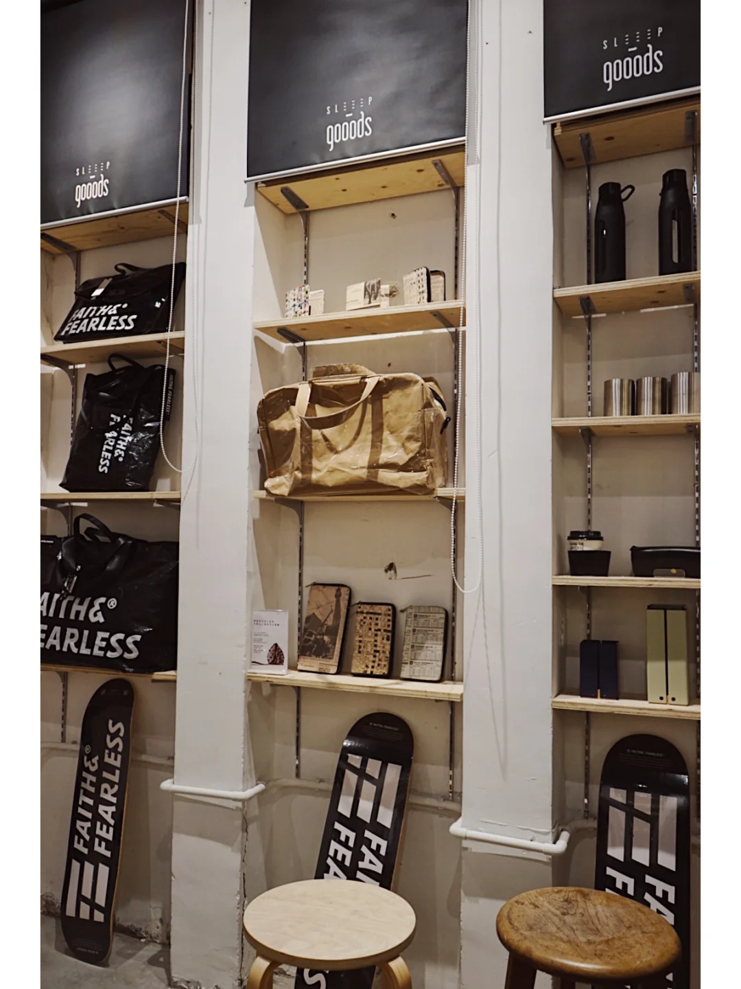 ☕️店内的装修也不拘一格,比较随意,懒人沙发,圆桌、板凳…处处让人感觉不修边幅的不羁感。的确店如其名,果然够badass。另外,它也是时钟胶囊酒店sleep的餐饮部。有一些促进睡眠的周边产品销售。比如精油、喷雾…(如图9)