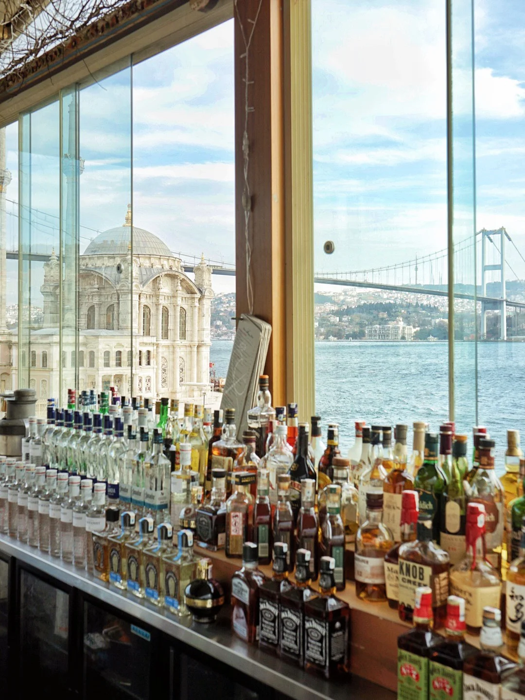 Banyan Restaurant是一家多国菜的餐厅酒吧,坐落在新巴洛克风格的清真寺—Ortaköy清真寺的不远处。很喜欢餐厅的露台玻璃房,回形的吧台区域正对着苍茫的博奥普鲁斯海峡,清真寺以及跨海大桥。这个景色真的是一见钟情。