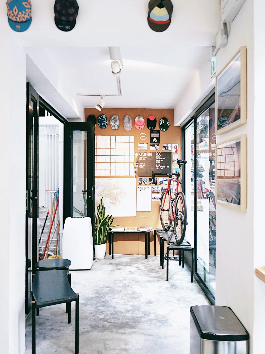 🚴♀️很喜欢Rapha的店铺设计,黑白两色两层,非常简约。楼下是服饰店和骑行周边产品,潮流单品。楼上则是咖啡店,阳光照进整面落地窗,暖暖的,也很安静的去处。楼上的咖啡店边上还有一个小庭院(如图3),坐着和闺蜜聊聊天,喝喝咖啡,甚是惬意。